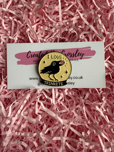 “I love trinkets” Crow Pin Badge