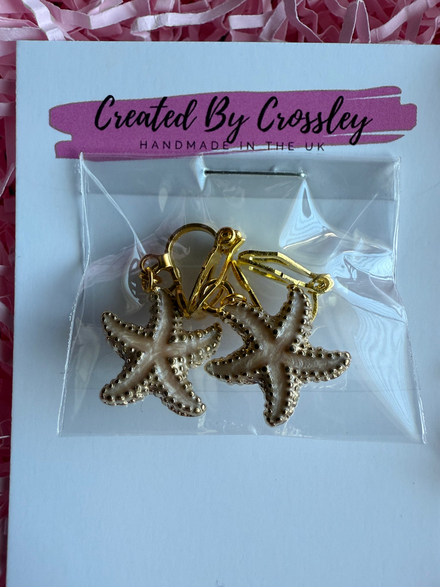 Pretty pink starfish clip on earrings, perfect for those with non pierced ears!