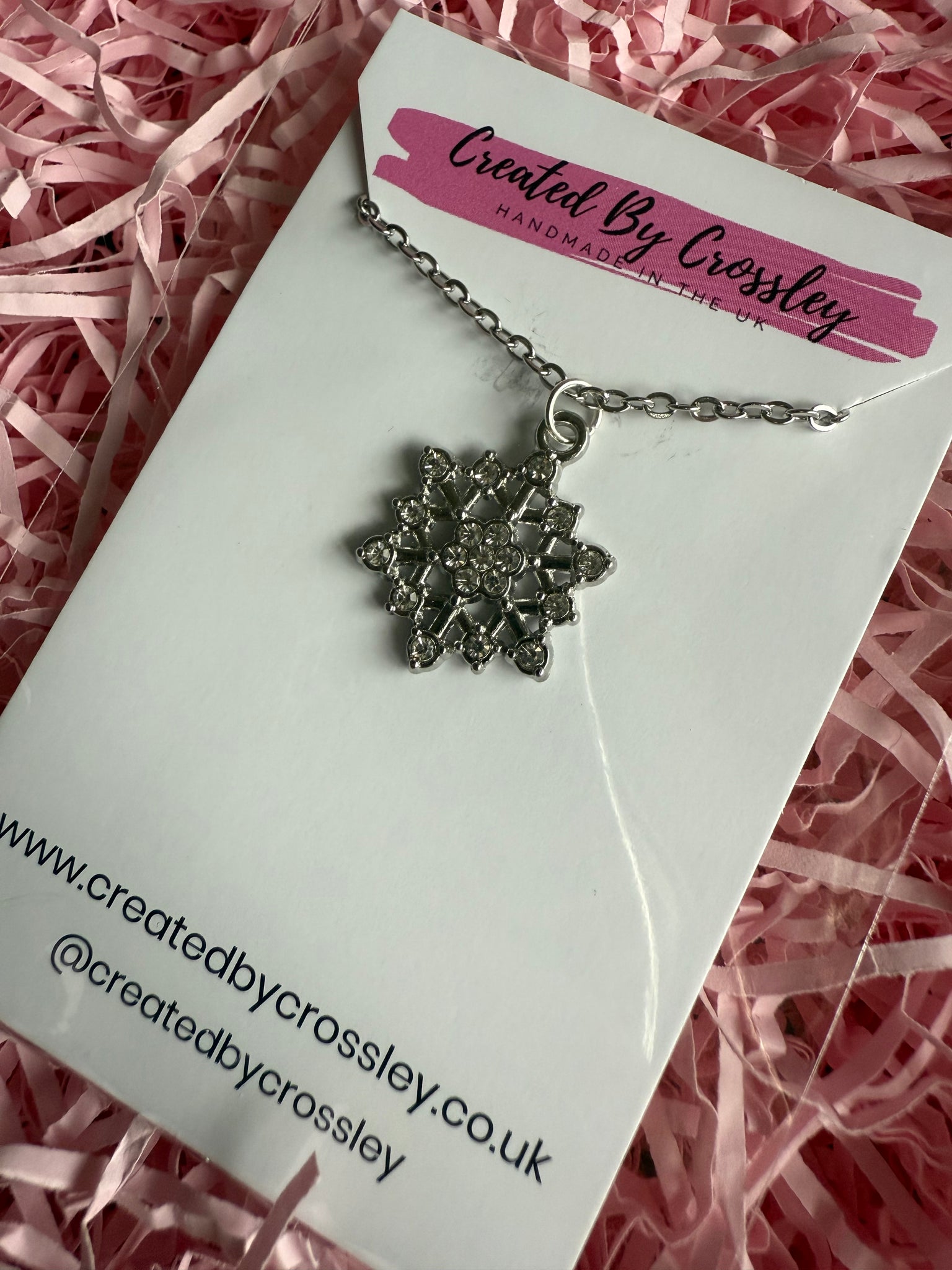 Beautiful snowflake necklace perfect for adding a little sparkle to your festive outfits!