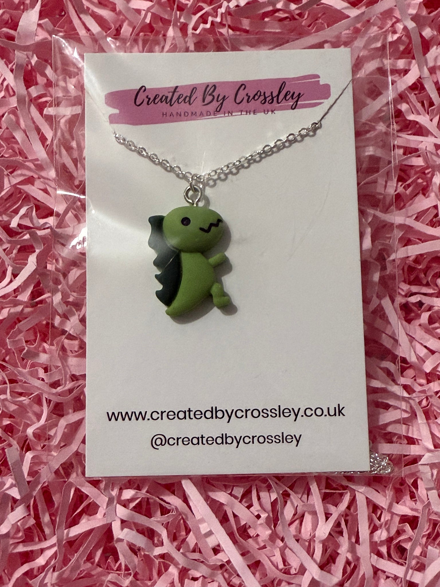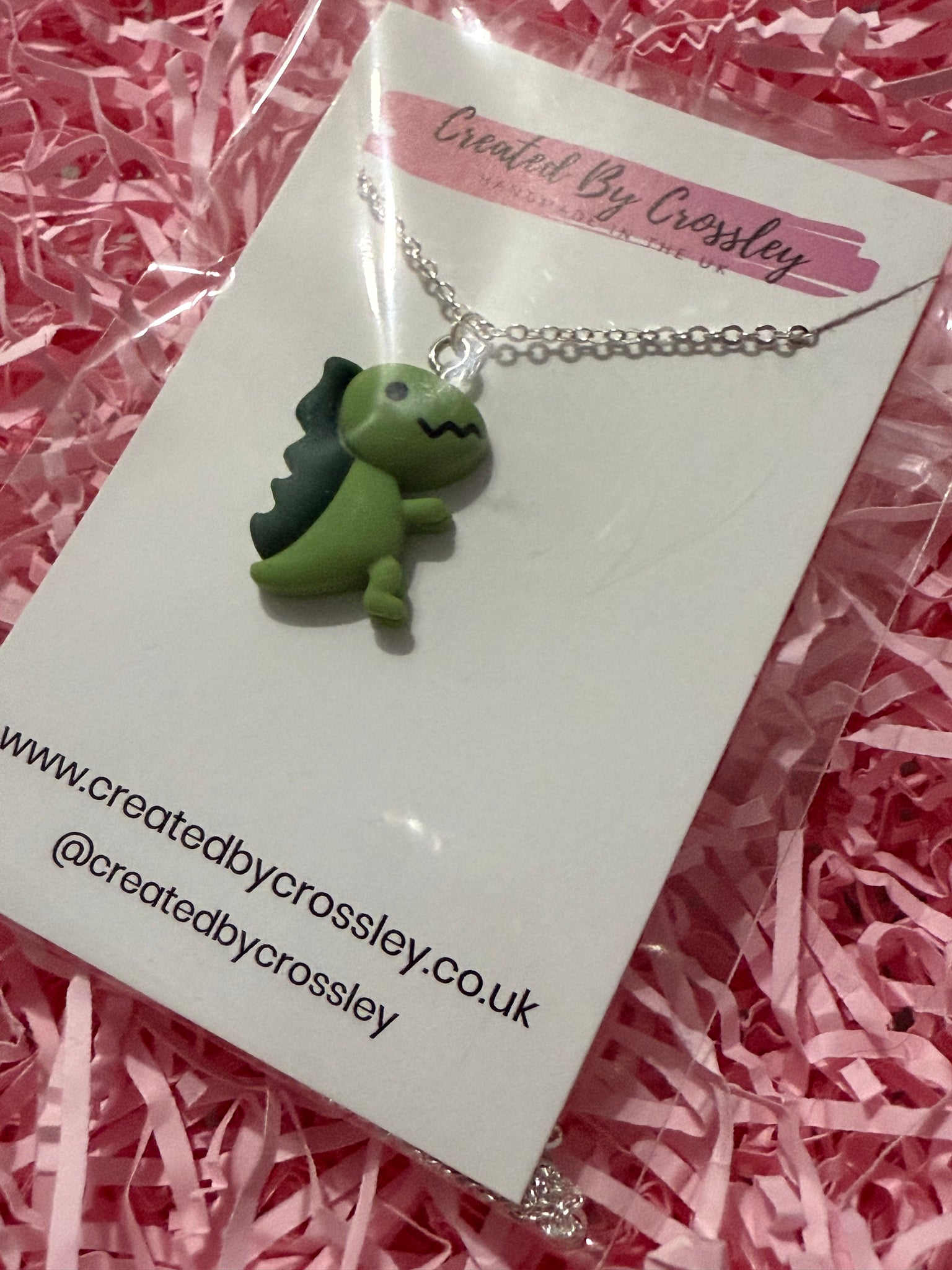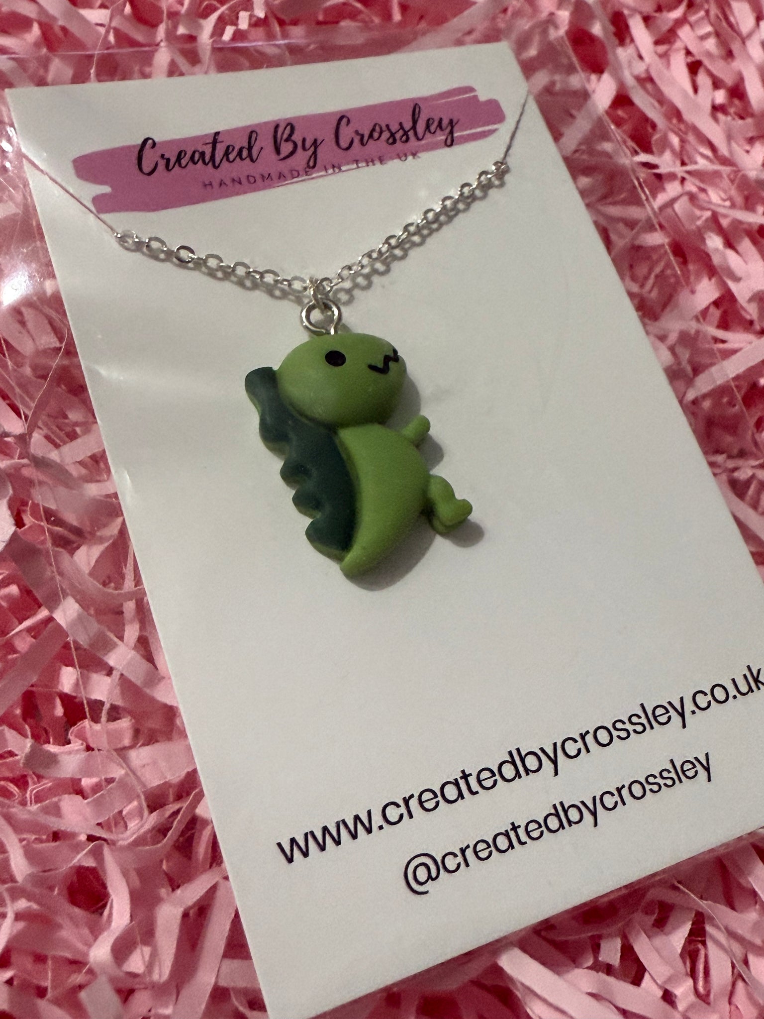 Cute green dinosaur necklace perfect for gifting!