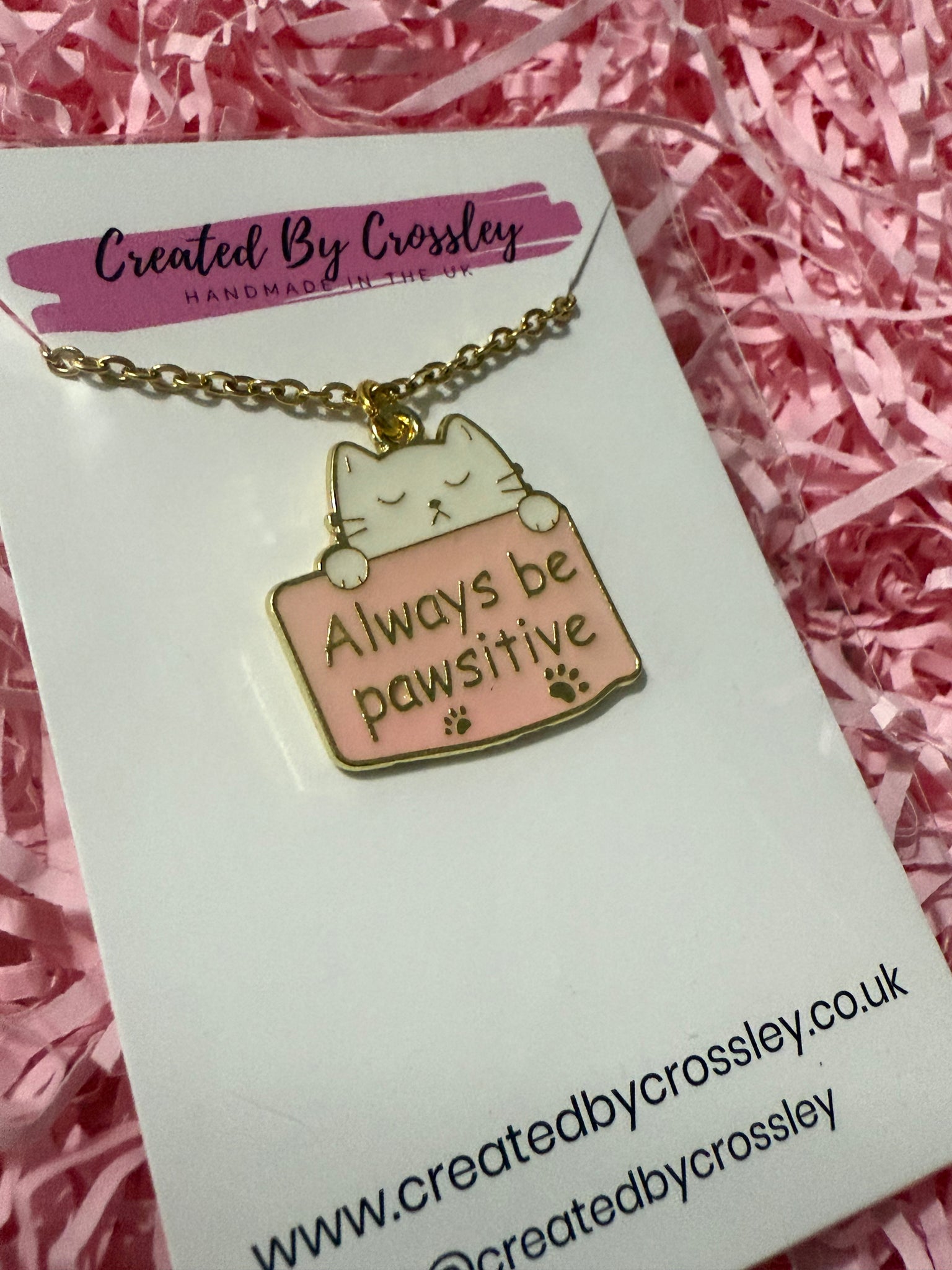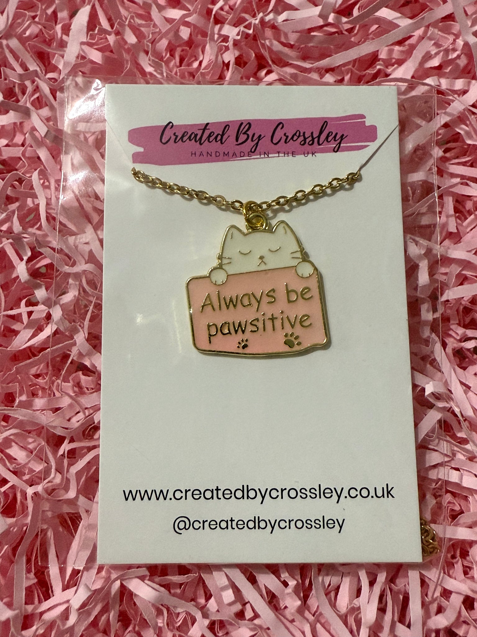 Cute “always be pawsitive” cat necklace perfect for gifting!