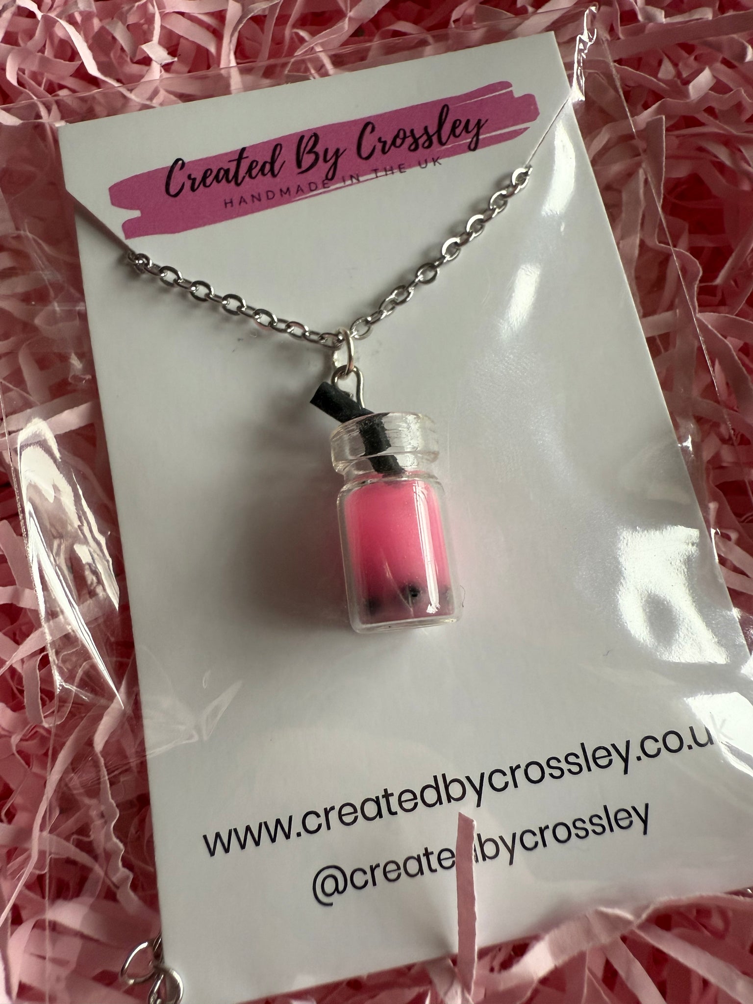 Bright pink boba /bubble tea necklace perfect for adding some colour and fun to your outfit!
