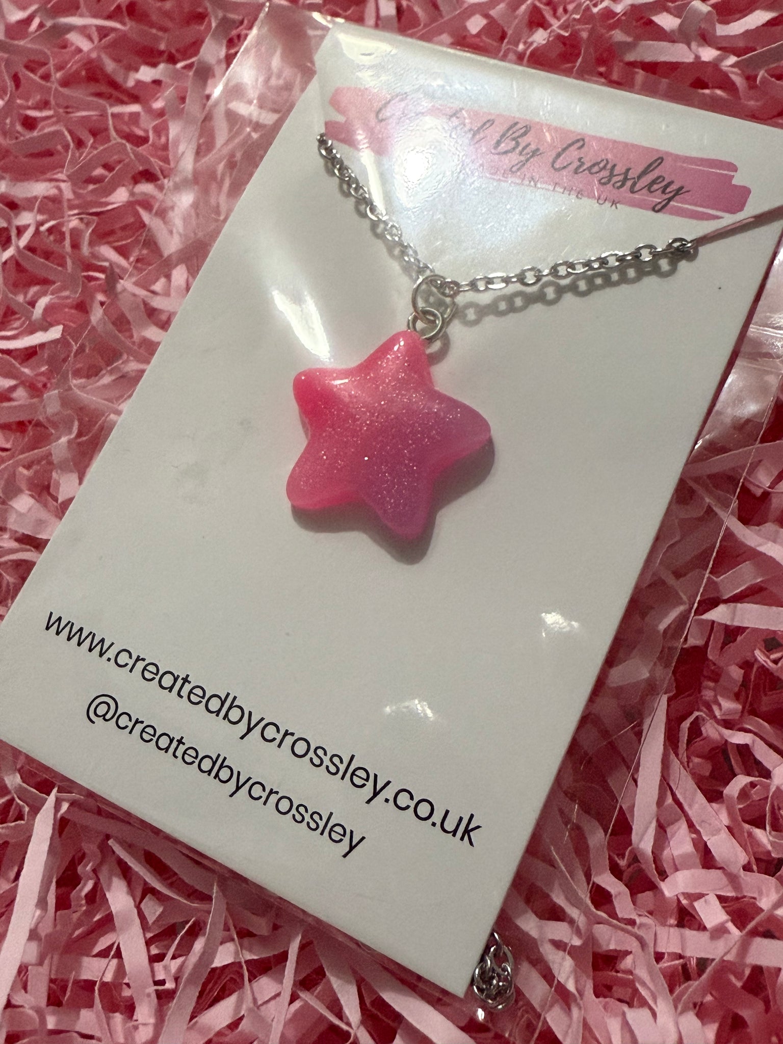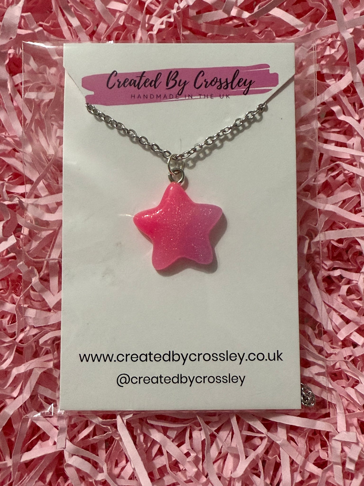 Shimmery pink star necklace perfect for adding some colour and fun to your outfit!