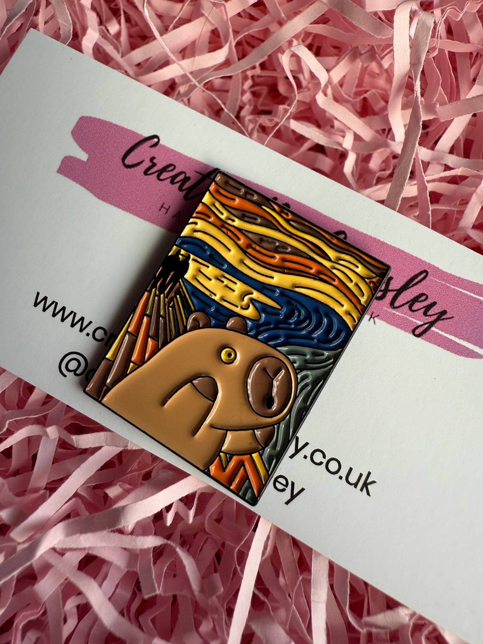 • Load image into Gallery viewer, Capybara Painting Pin Badge