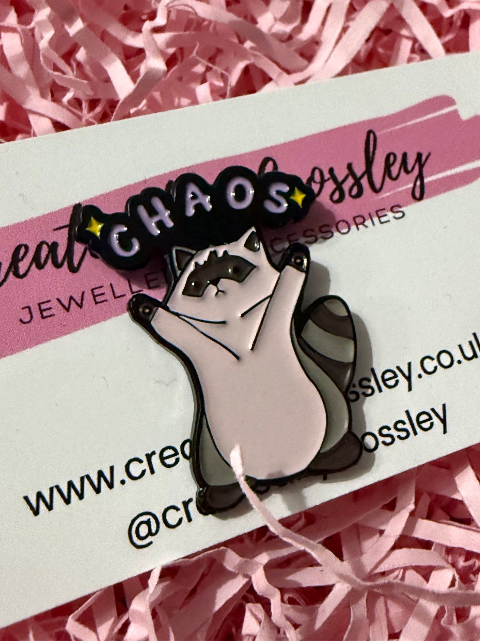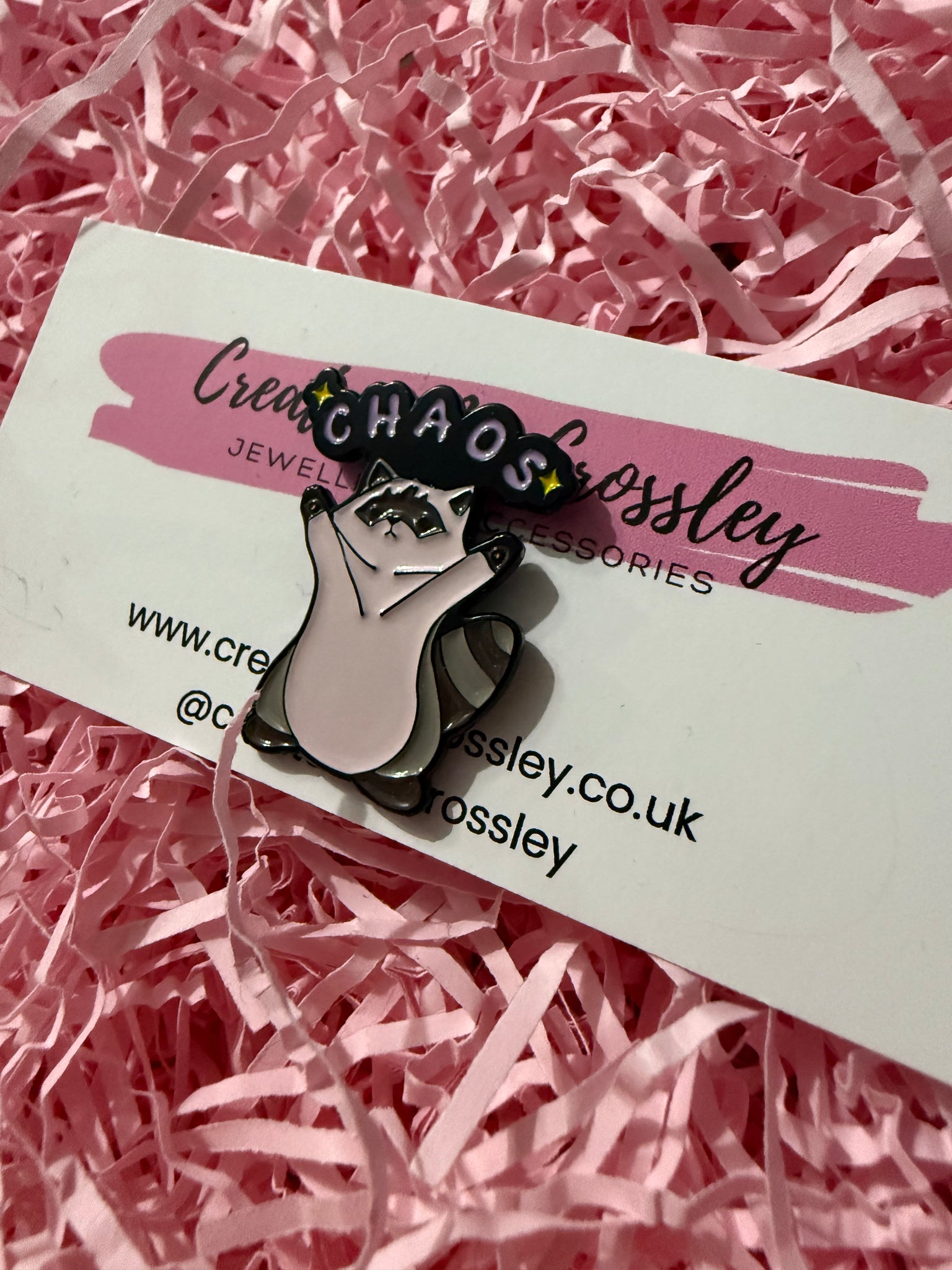 • Load image into Gallery viewer, Chaos Raccoon Pin Badge