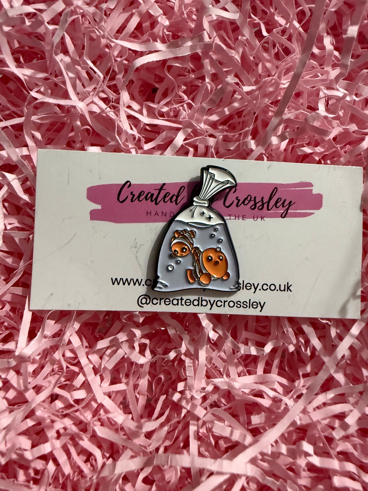 • Load image into Gallery viewer, Fish in a Bag Pin Badge