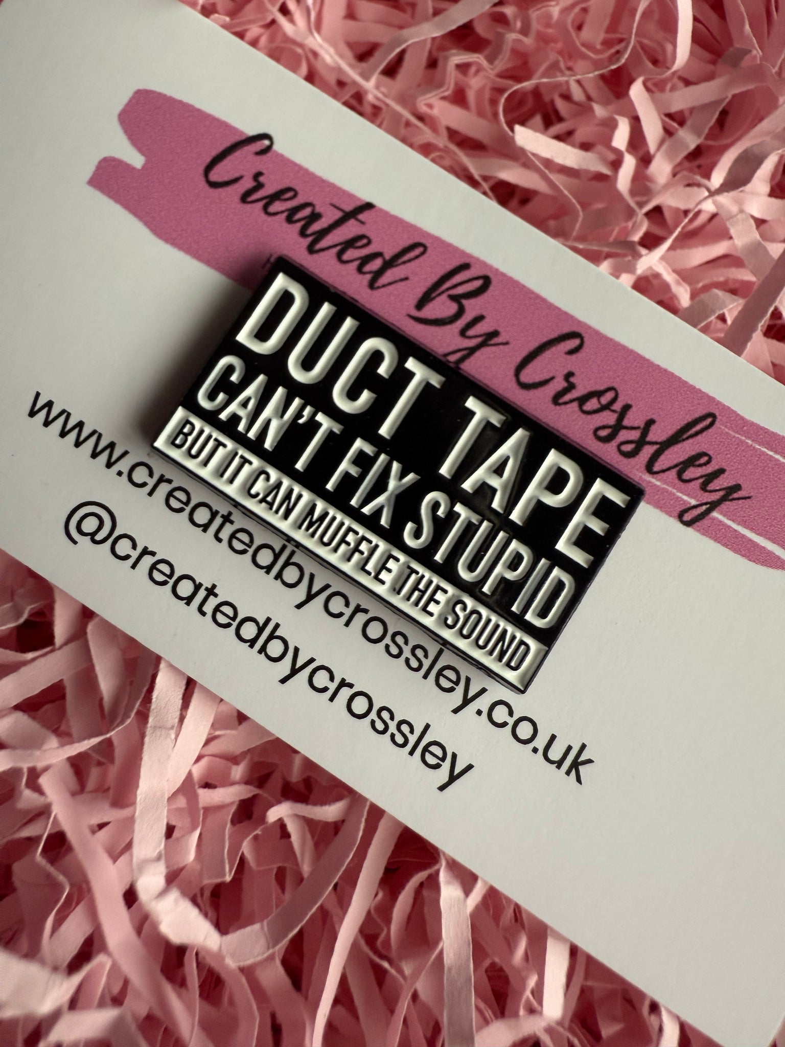 “Duct tape can’t fix stupid but it can muffle the sound” pin badges.