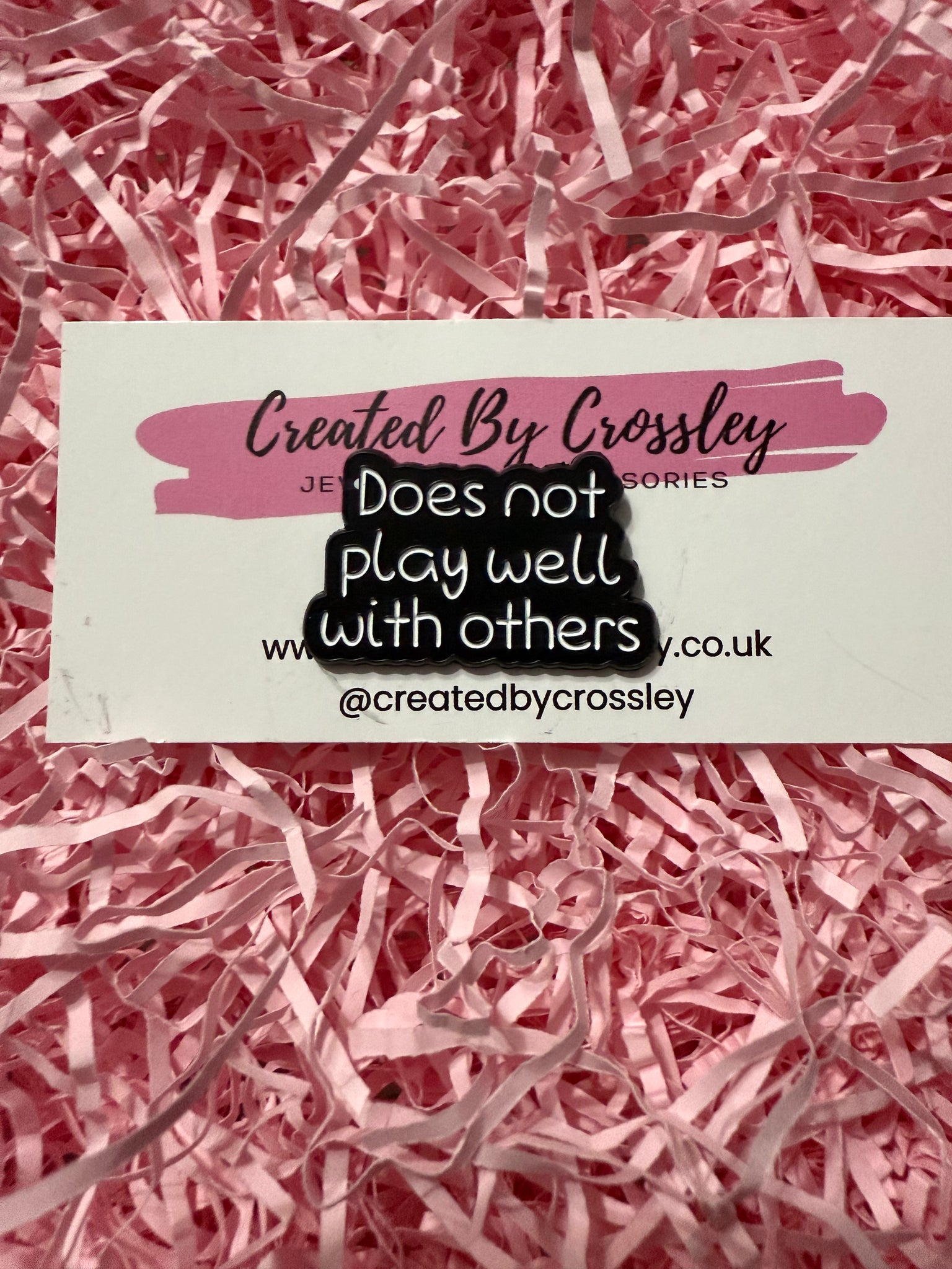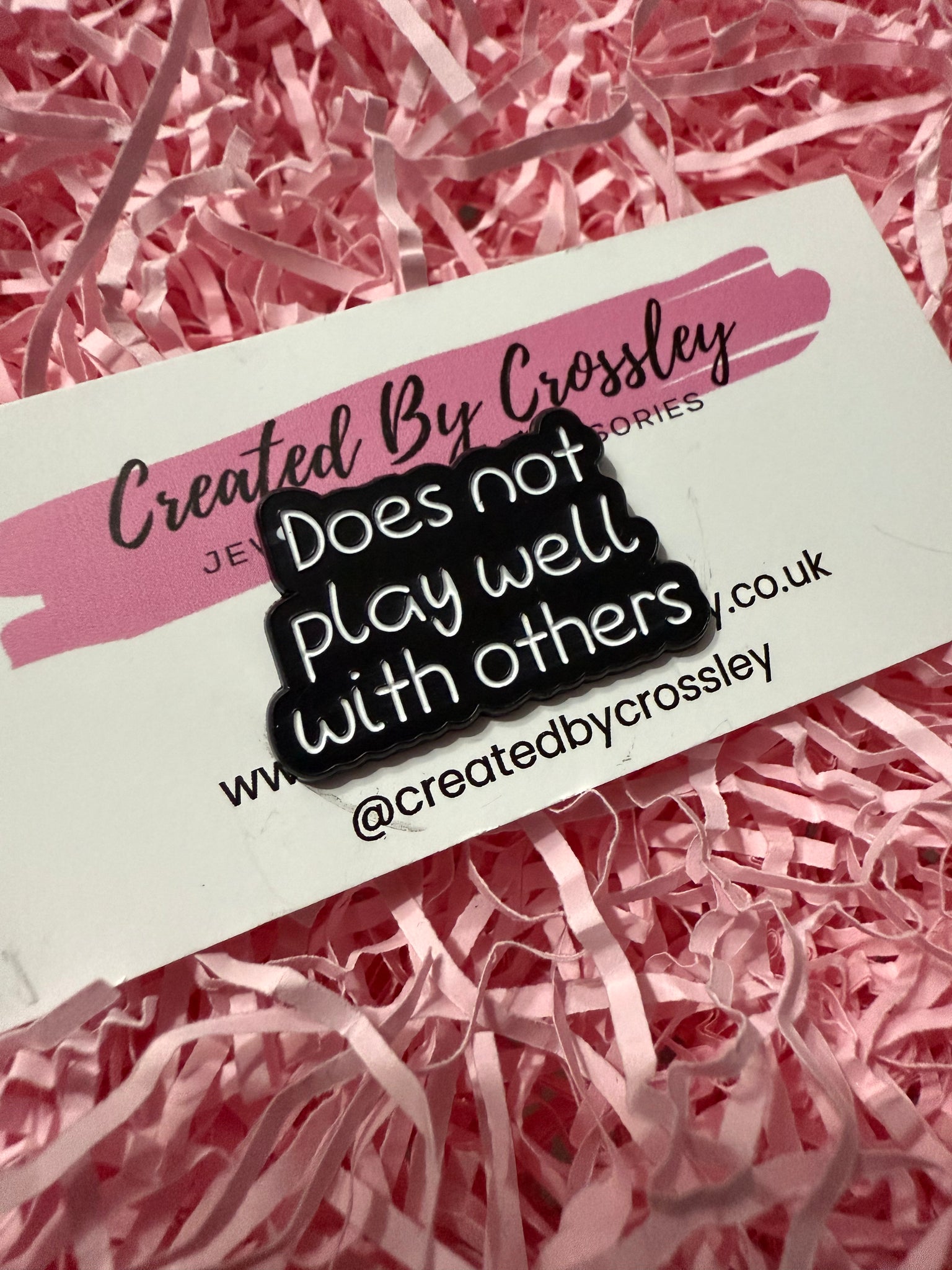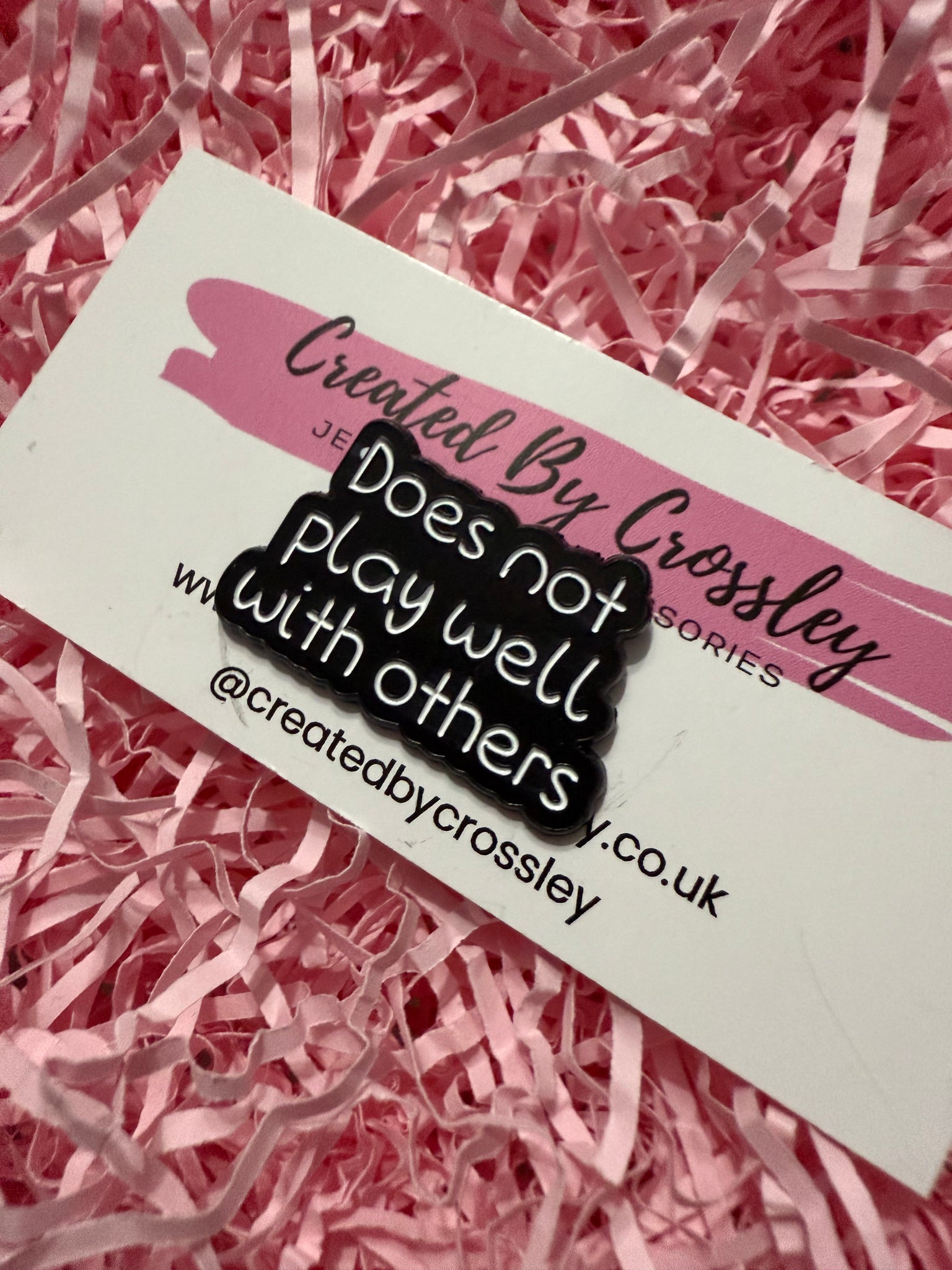 “Does not play well with others”Pin badges can be used on bags, clothing, pencil cases, lanyards and more, to accessorise and add some colour and personality to your items.