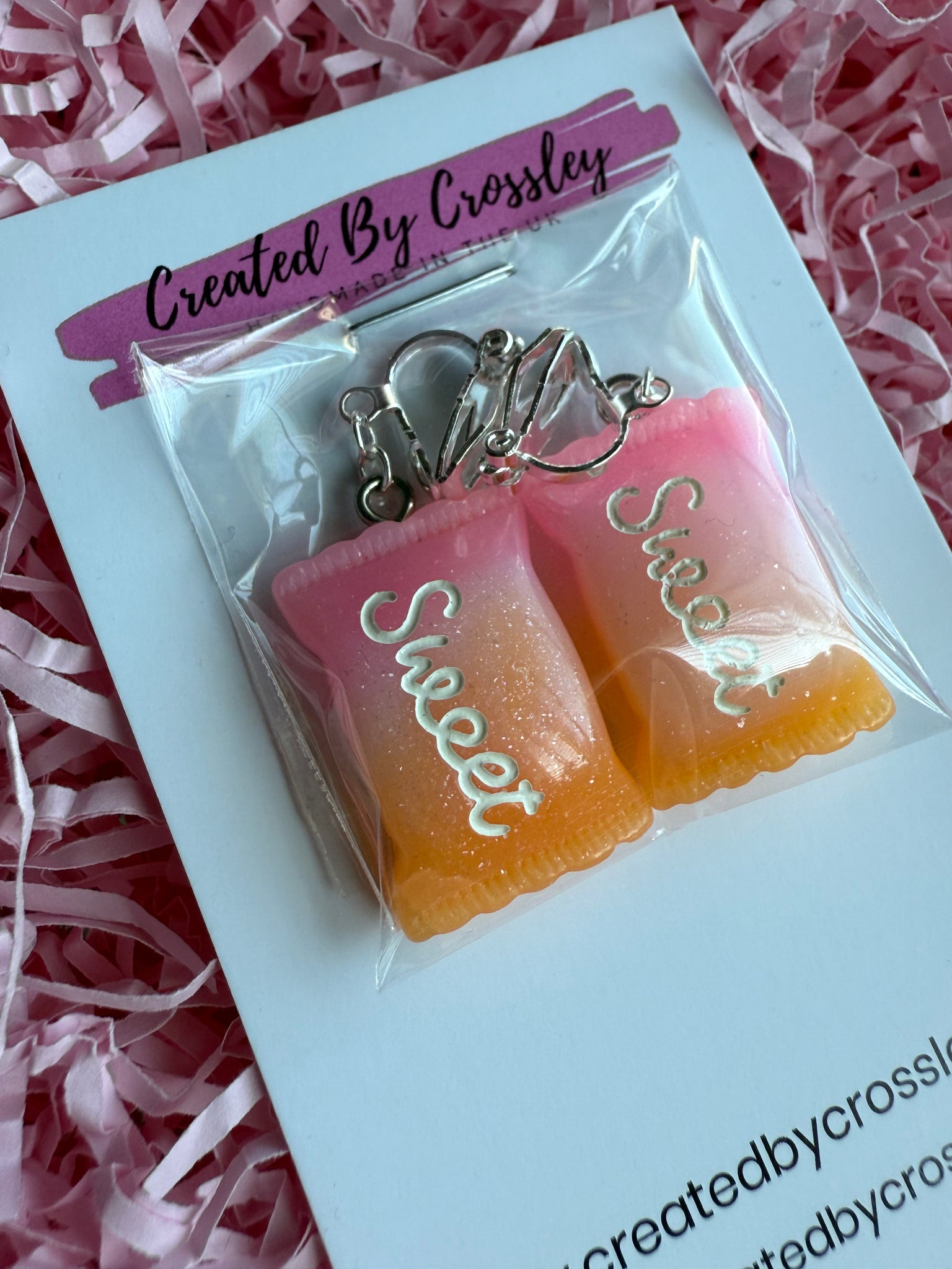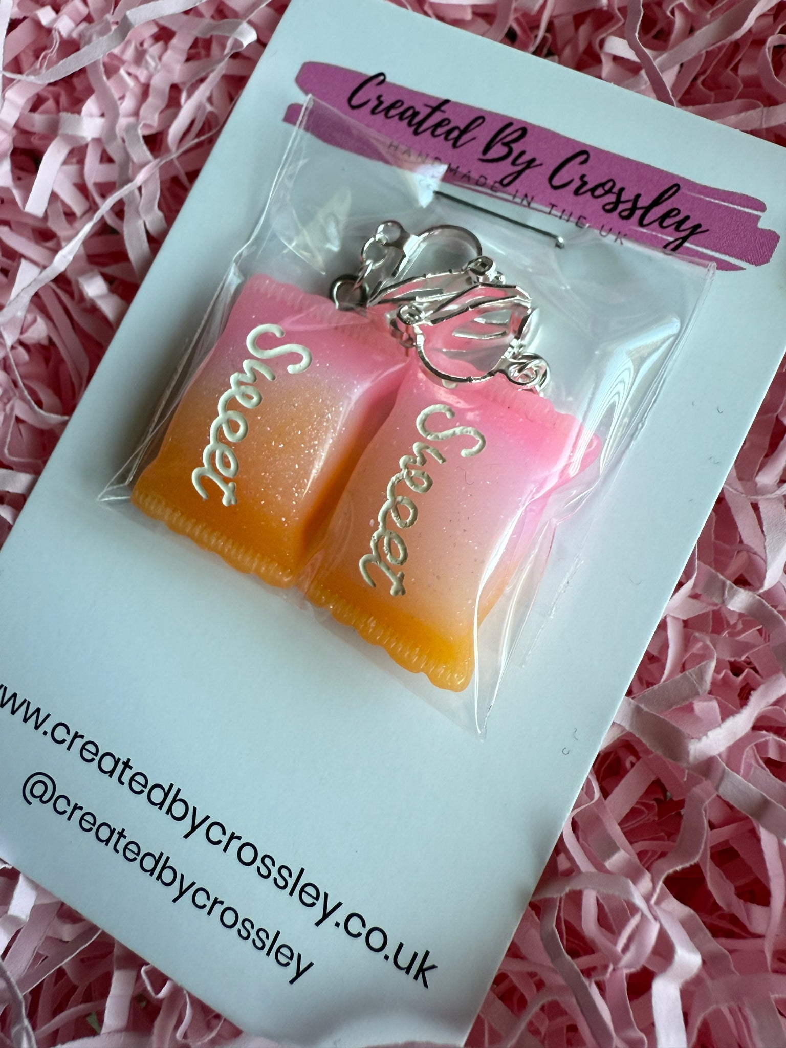 Pink and orange ombré sweet bags clip on earrings, perfect for those with non pierced ears!