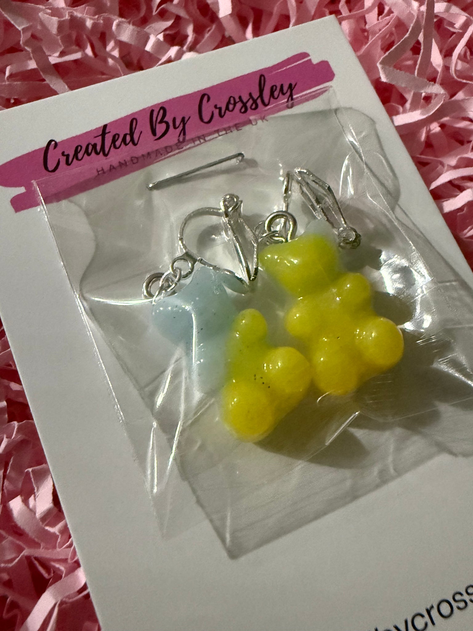 Yellow Blue Gummy Bear Clip On Earrings