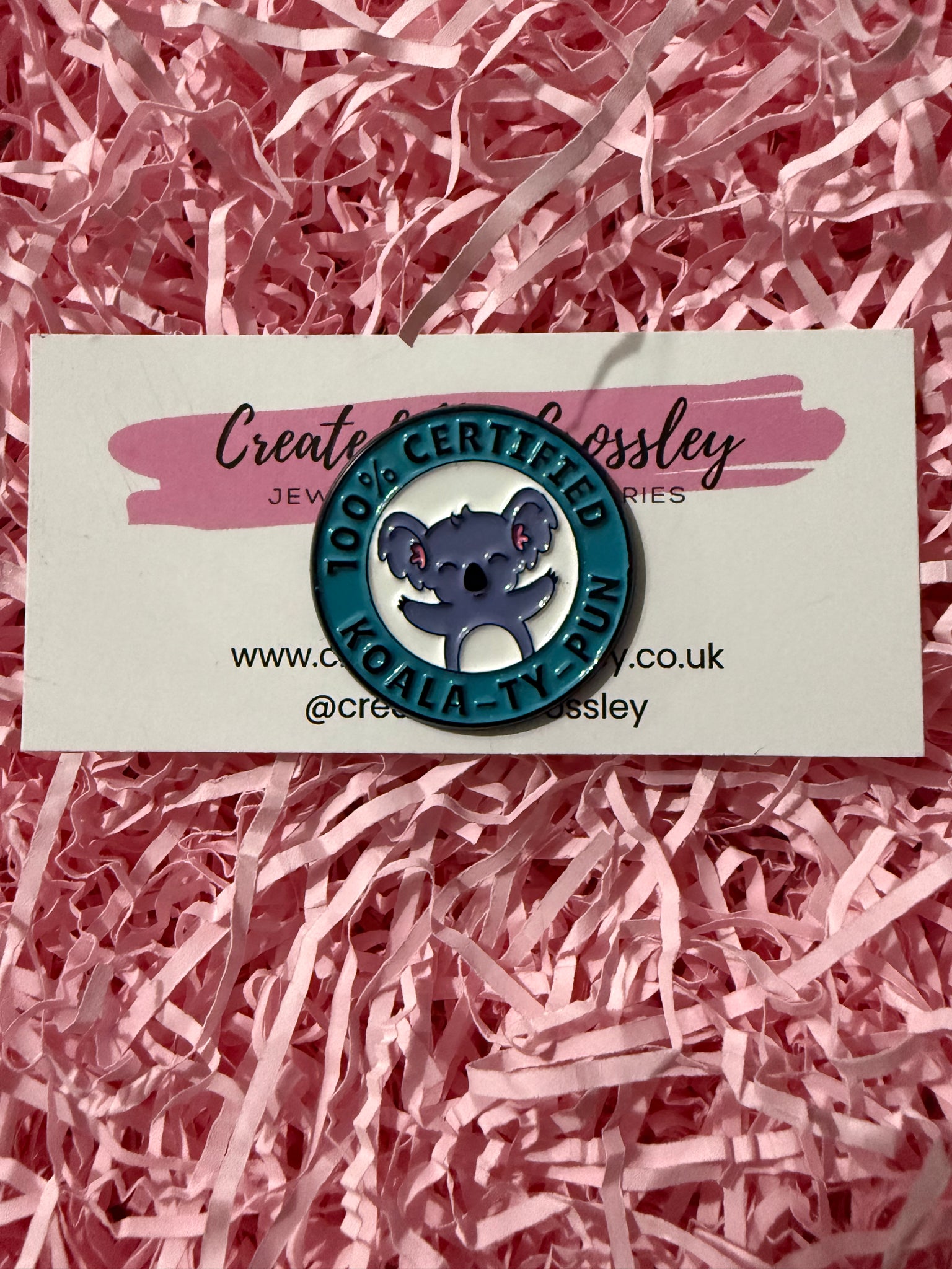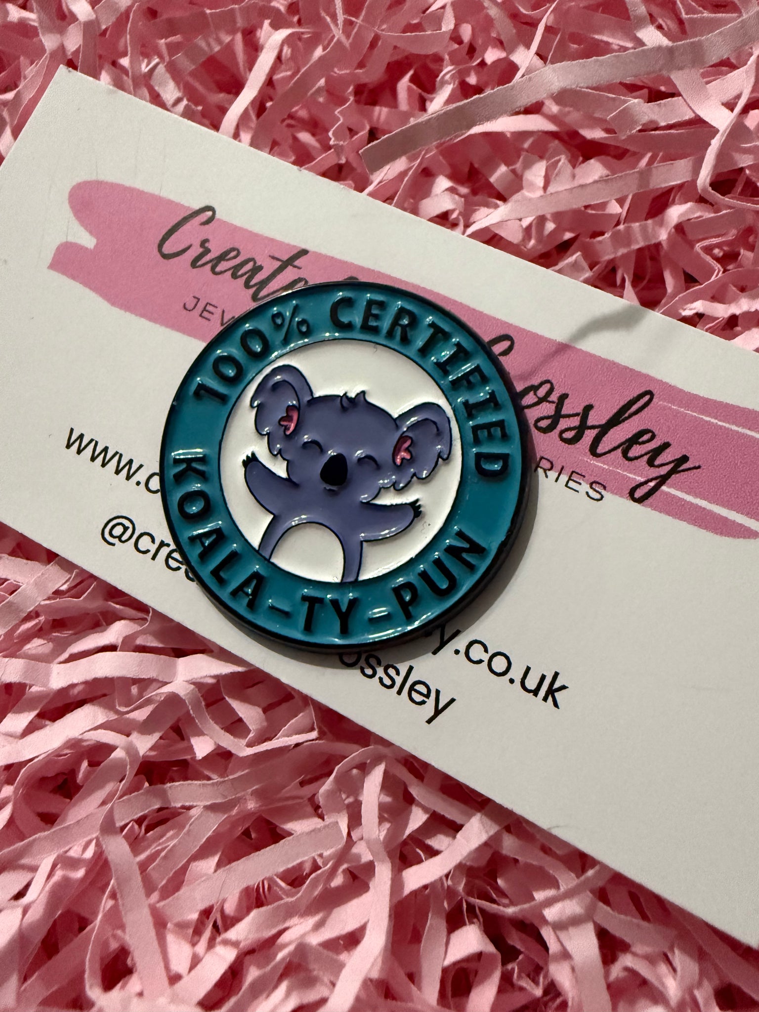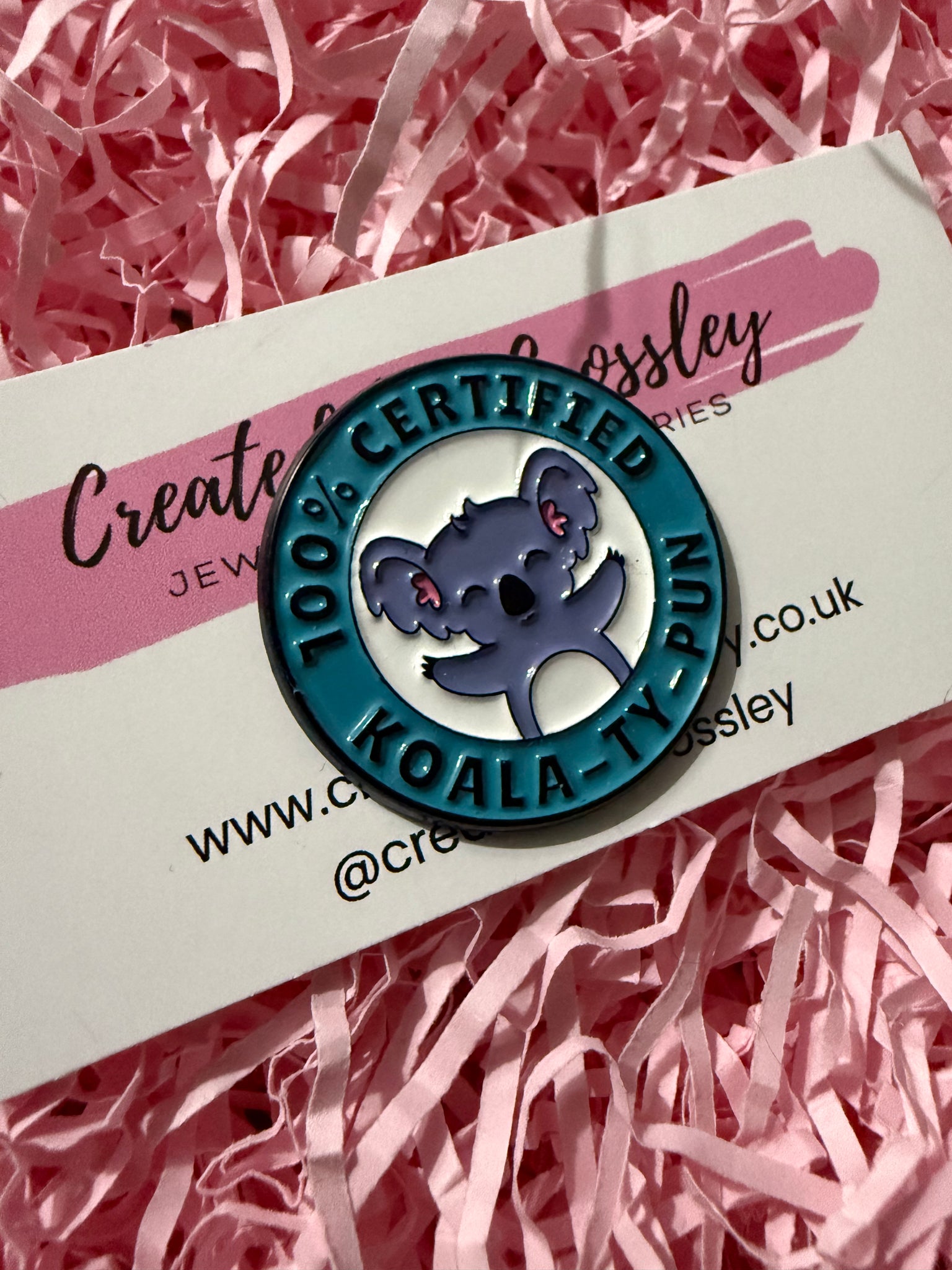• Load image into Gallery viewer, “100% certified koala-ty-pun” Koala Pin Badge