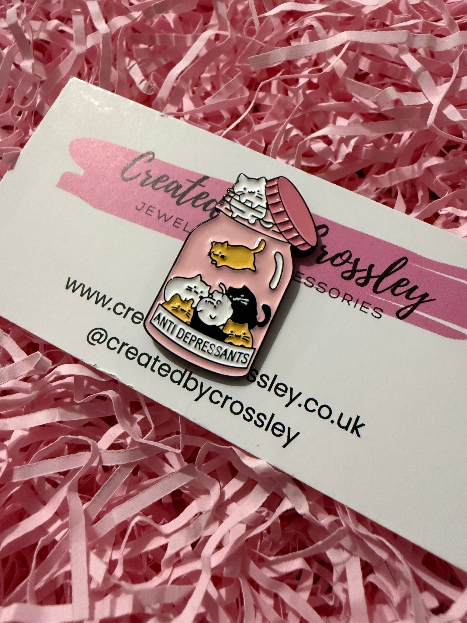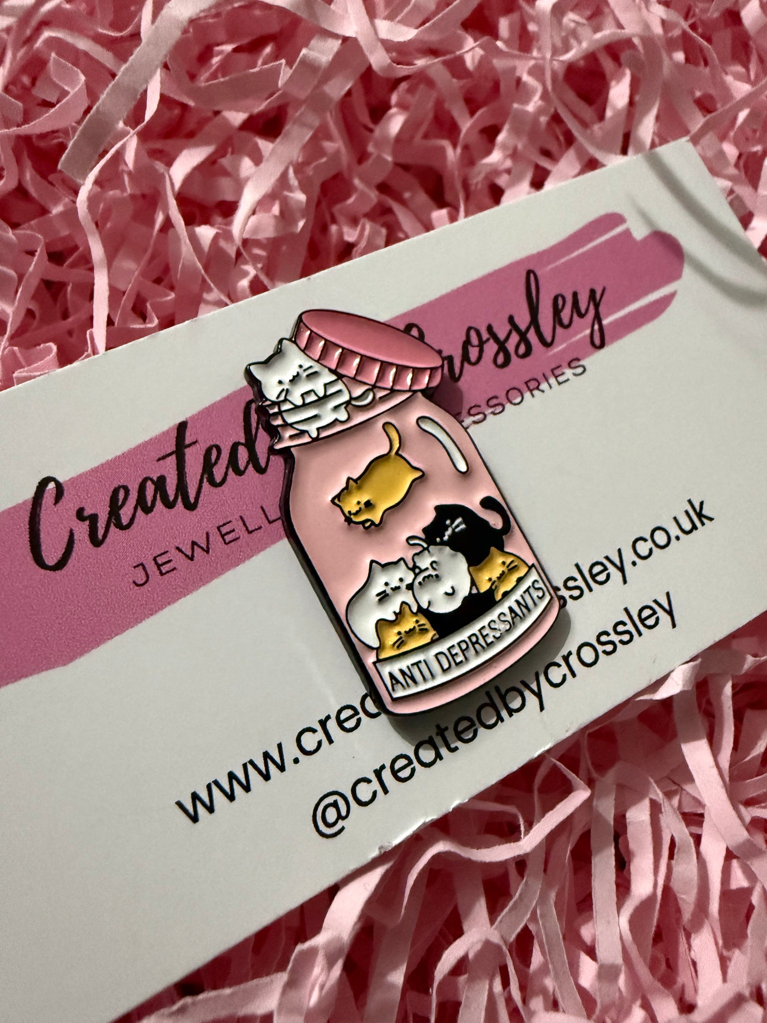 • Load image into Gallery viewer, “Anti Depressants” Jar of Cats Pin Badge