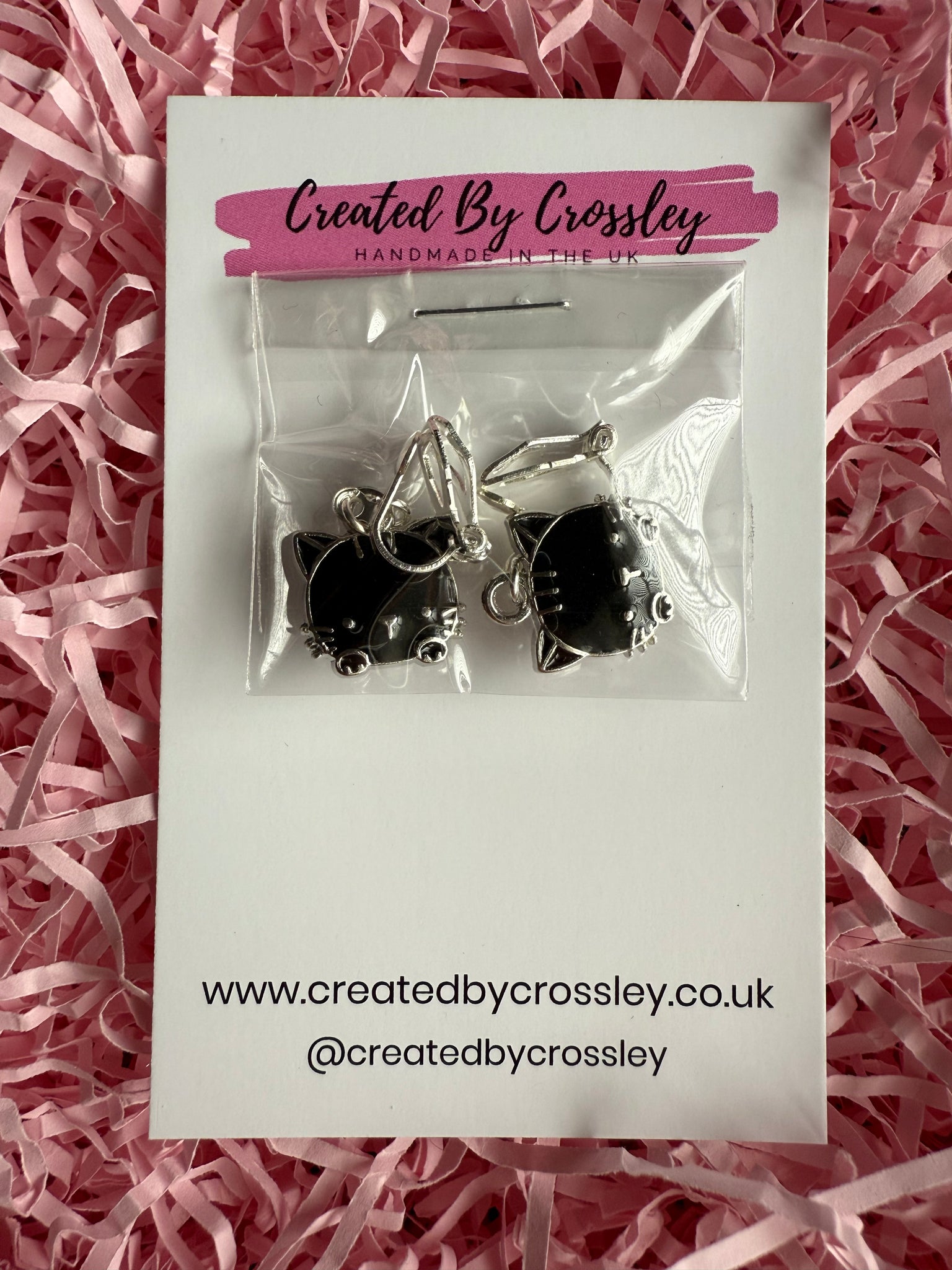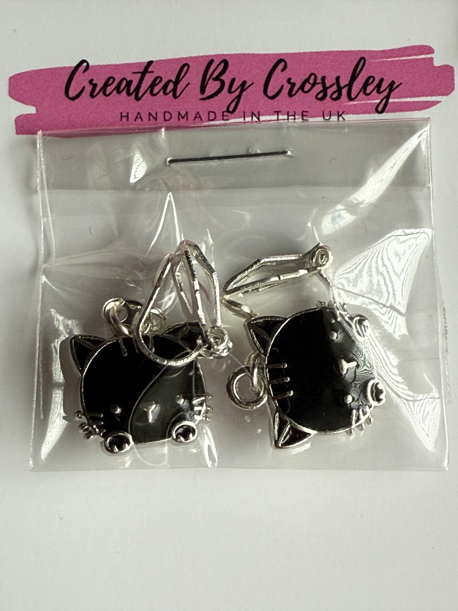 Adorable little black cat head clip on earrings, great for gifting and those with non-pierced ears!
