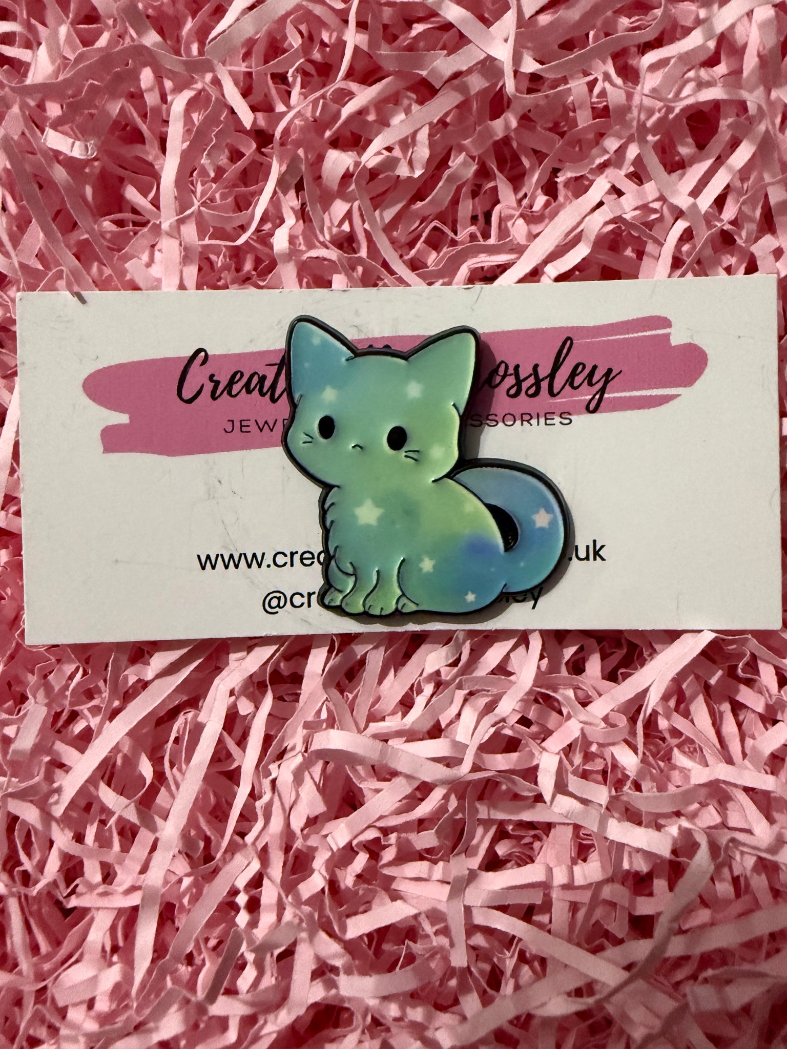 • Load image into Gallery viewer, Blue Galaxy Cat Pin Badge