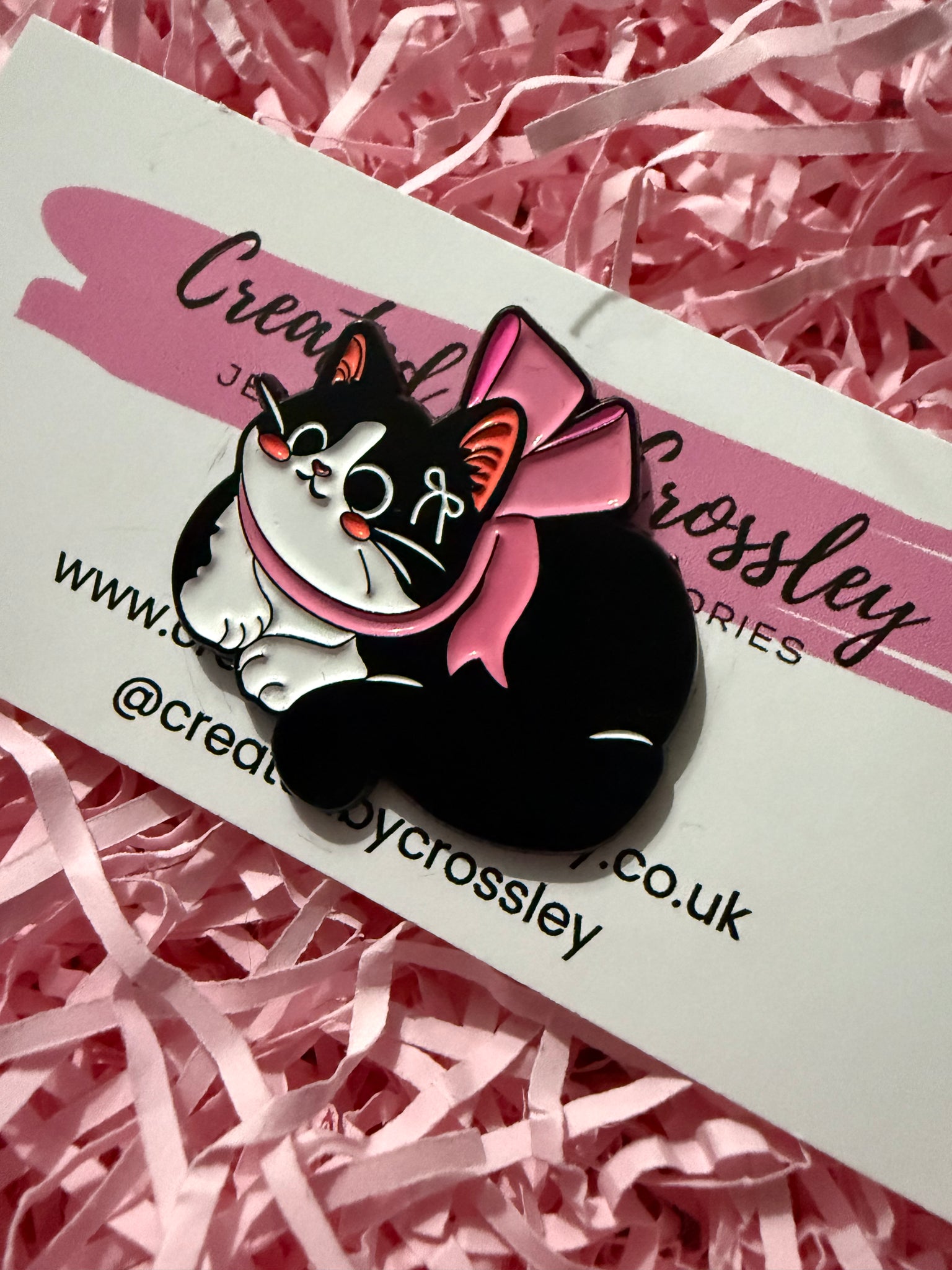 • Load image into Gallery viewer, Bow Cat Pin Badge