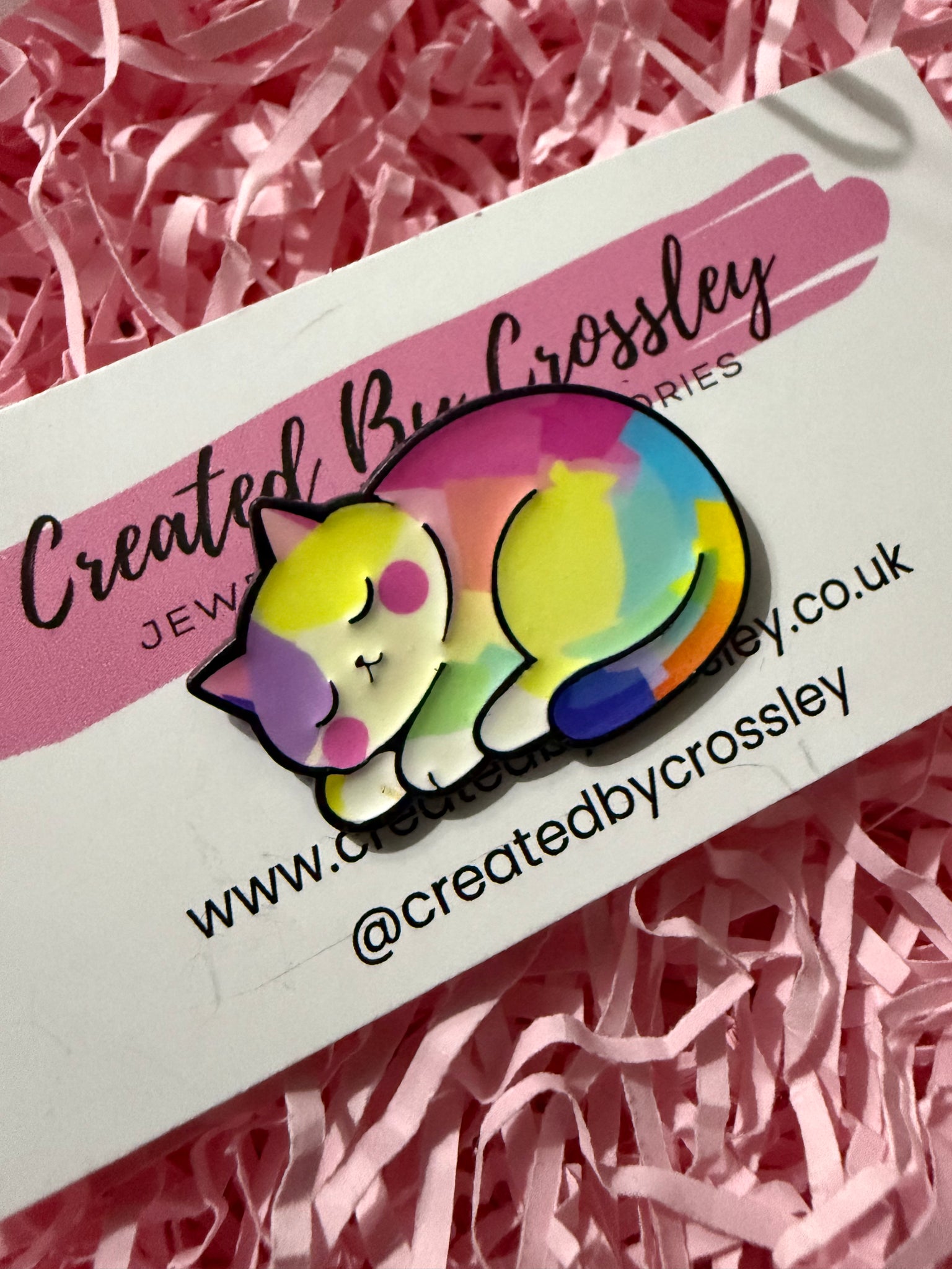 • Load image into Gallery viewer, Colourful Cat Pin Badge