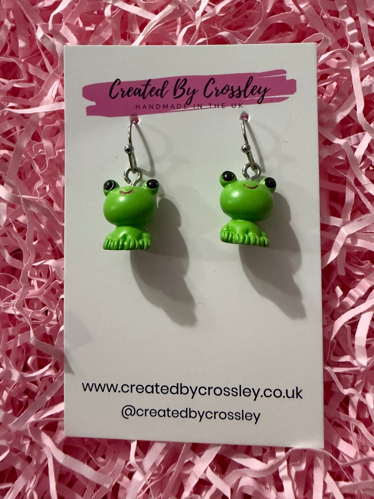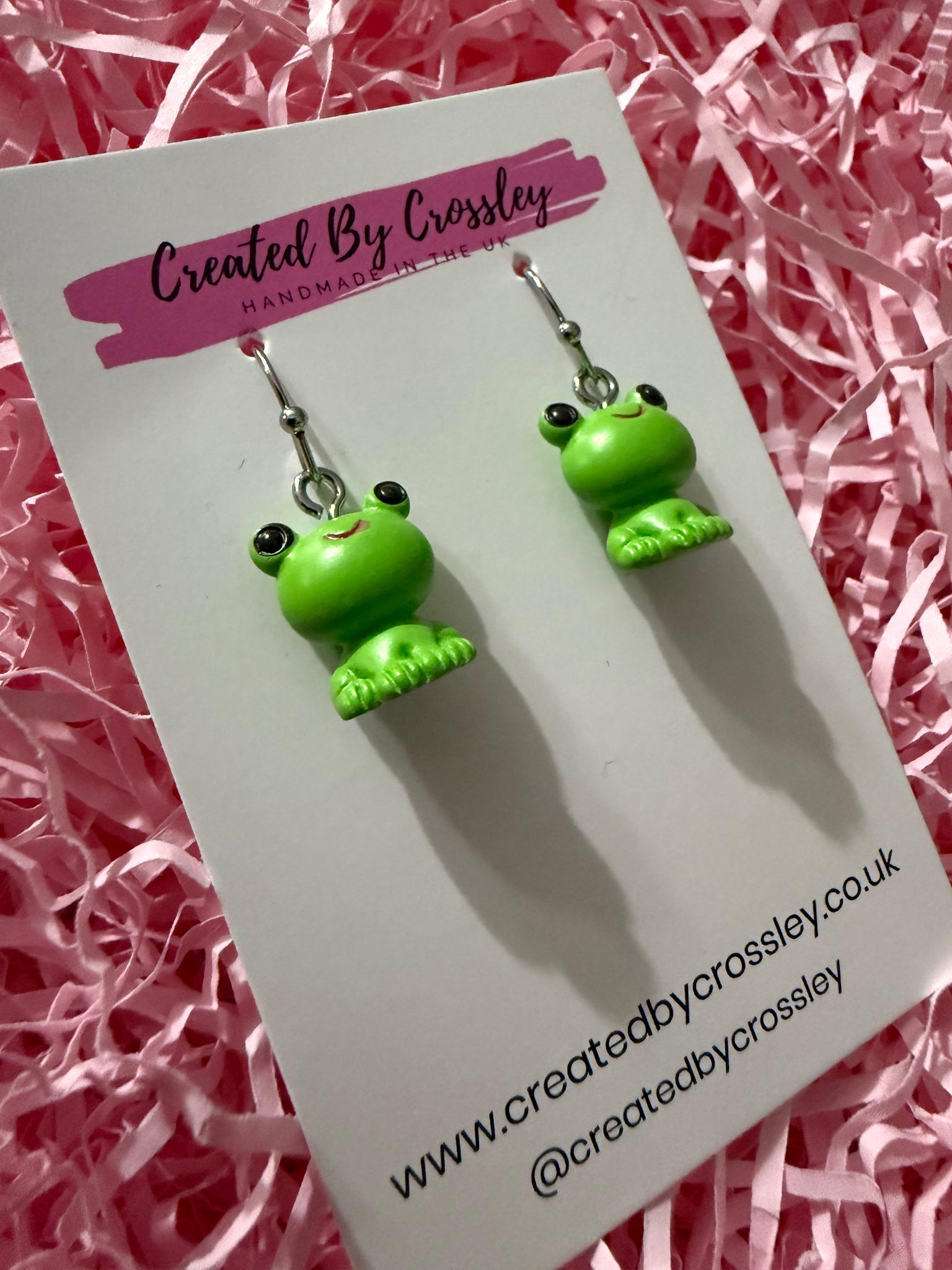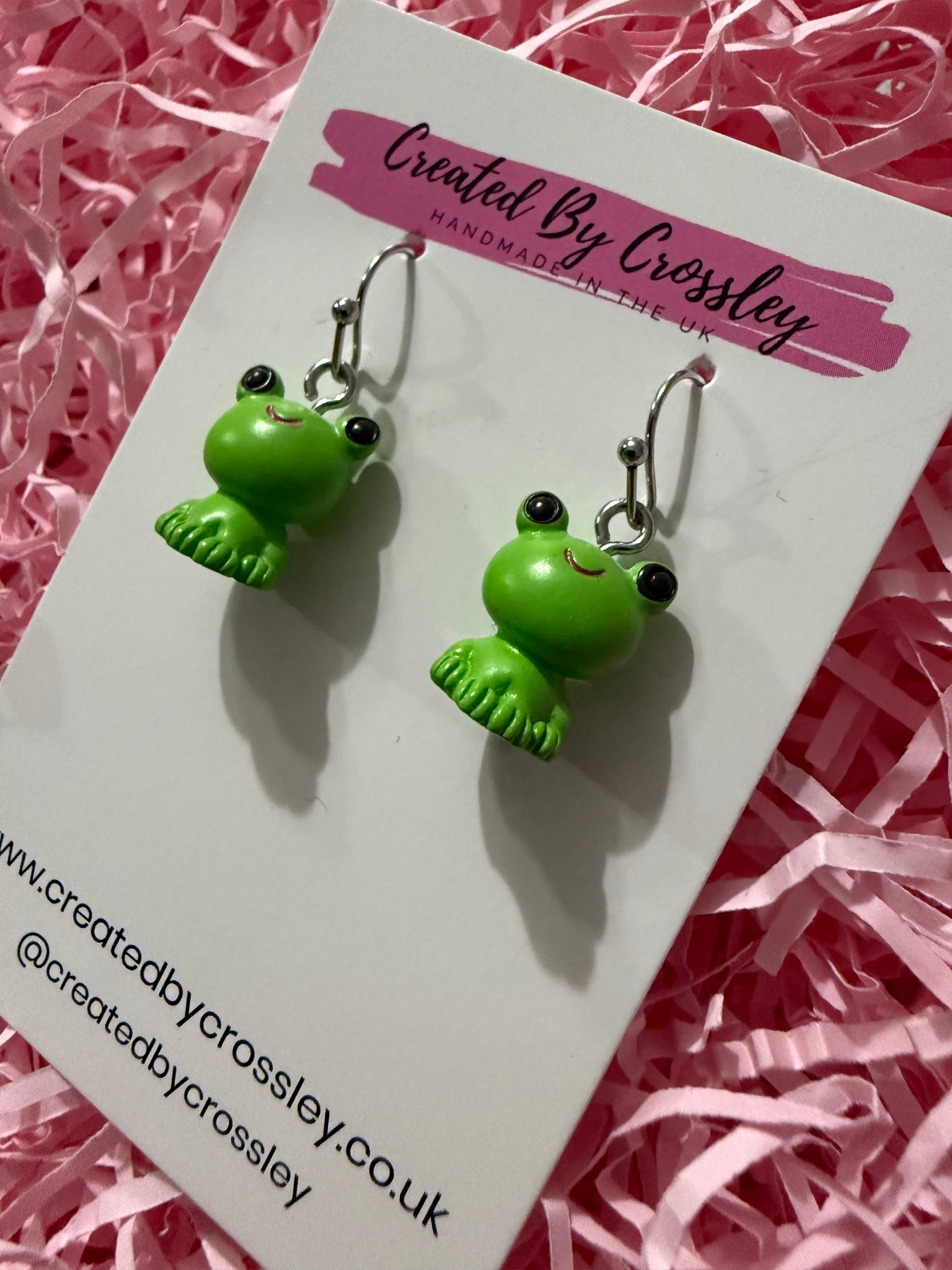 Adorable little green frog earrings, perfect for animal lovers! Stainless steel hooks