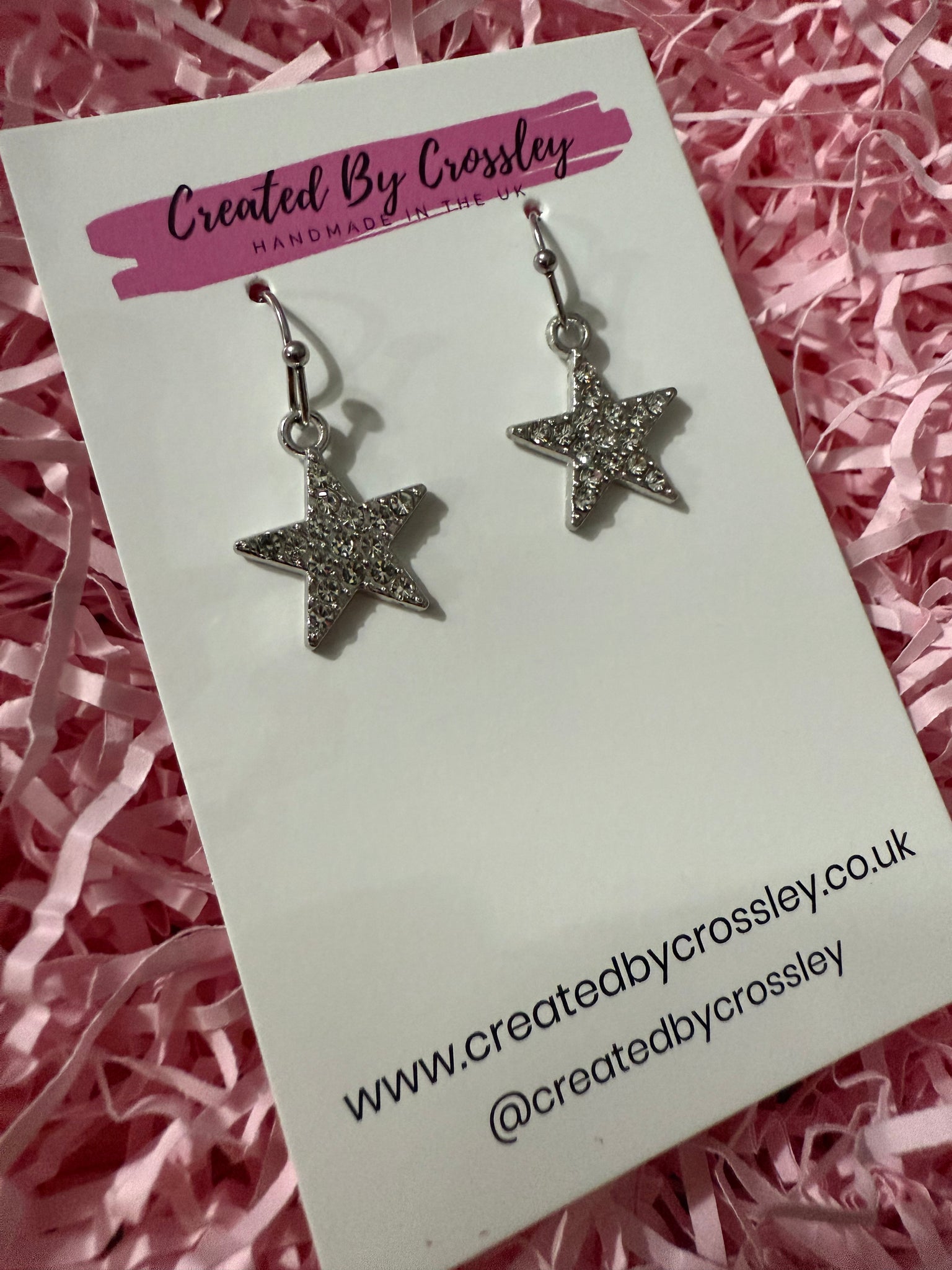 Pretty star earrings perfect for gifting or adding some sparkle to your own outfits! Stainless steel hooks