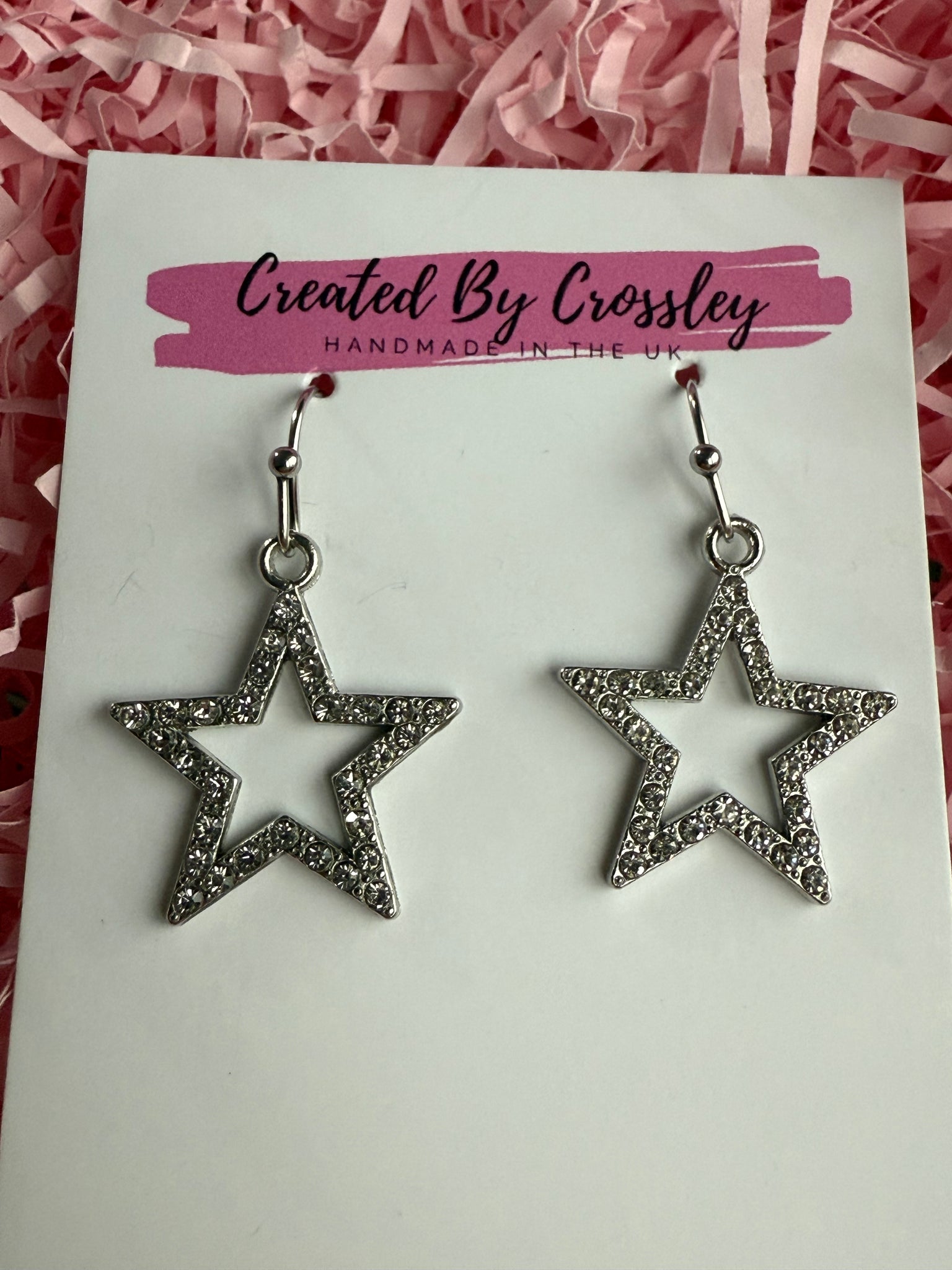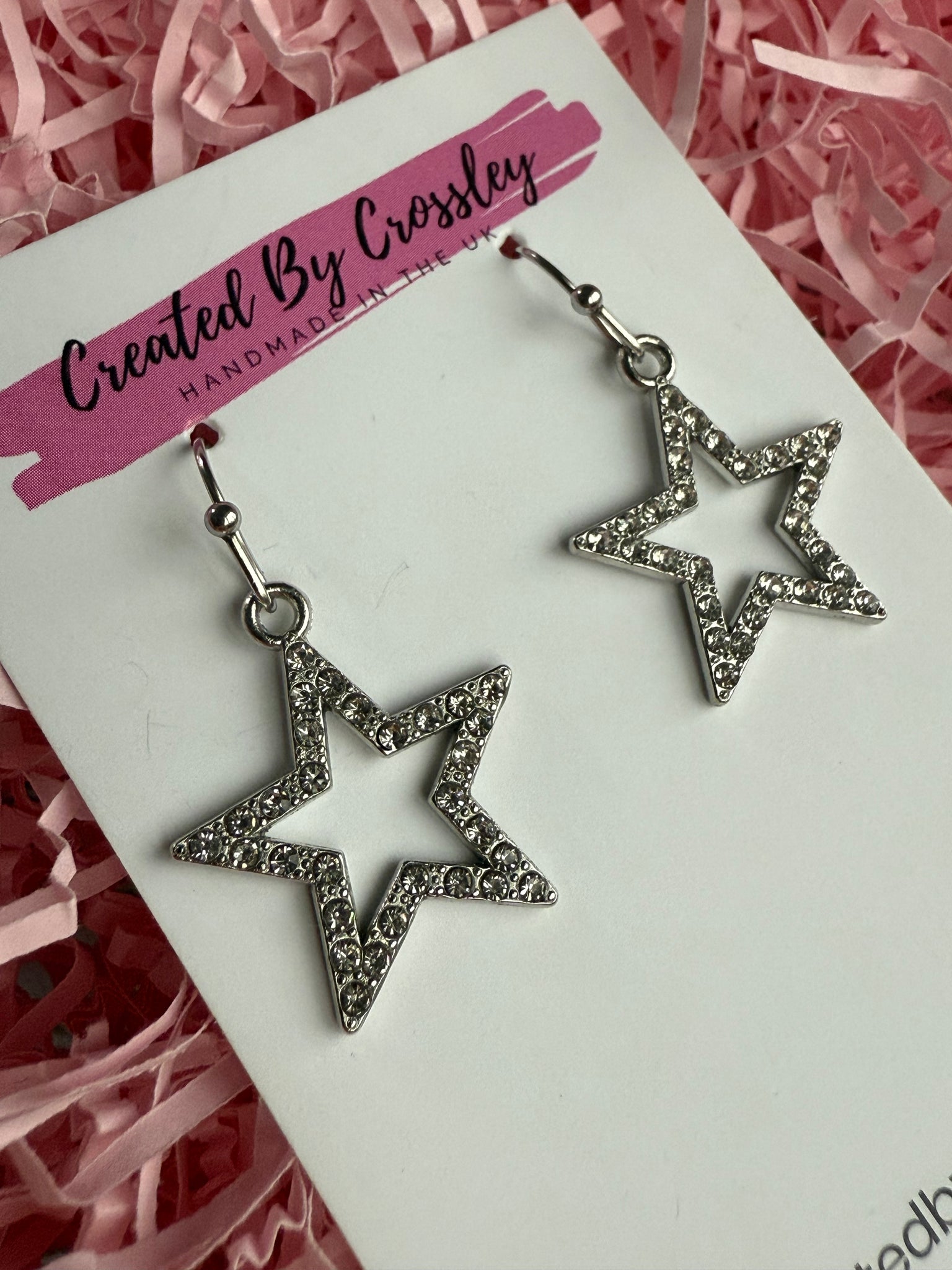 Pretty silver star earrings, great for gifting or adding a little sparkle to your outfits! Stainless steel hooks