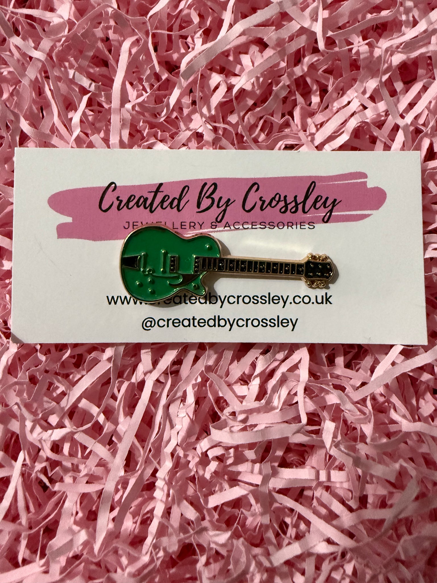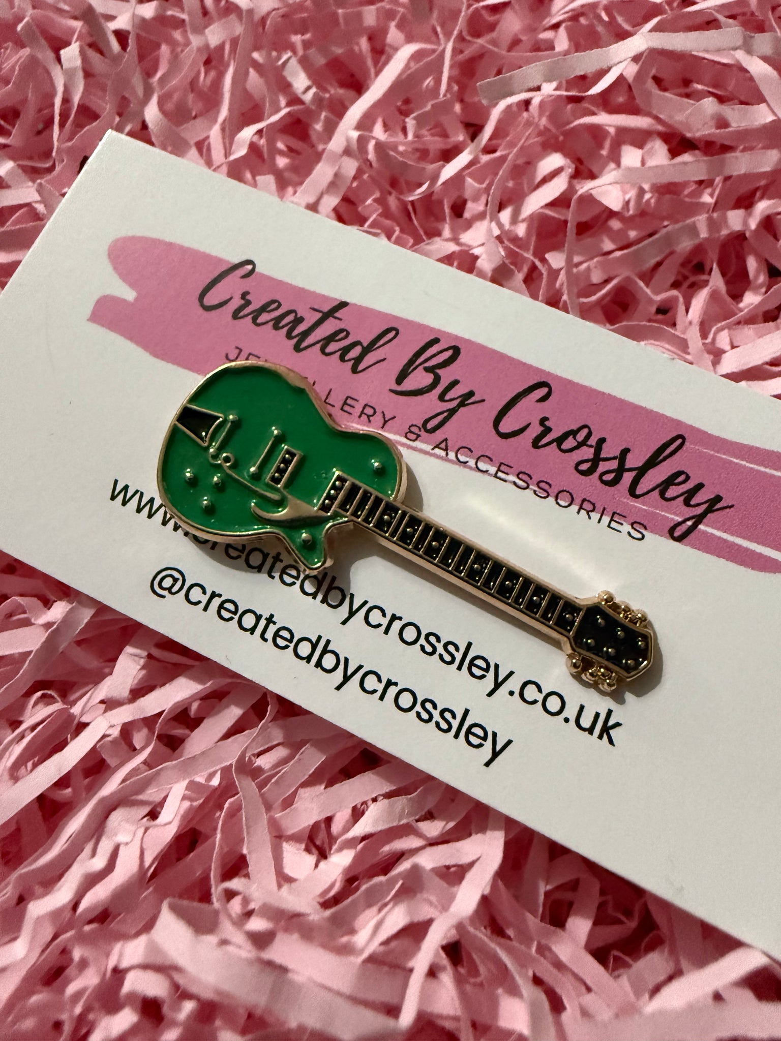 • Load image into Gallery viewer, Green Guitar Pin Badge