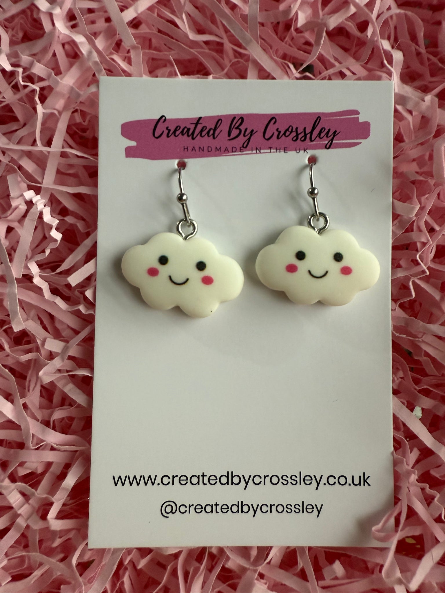 Adorable happy cloud earrings, great for gifting or adding some fun to your own outfits! Stainless steel hooks
