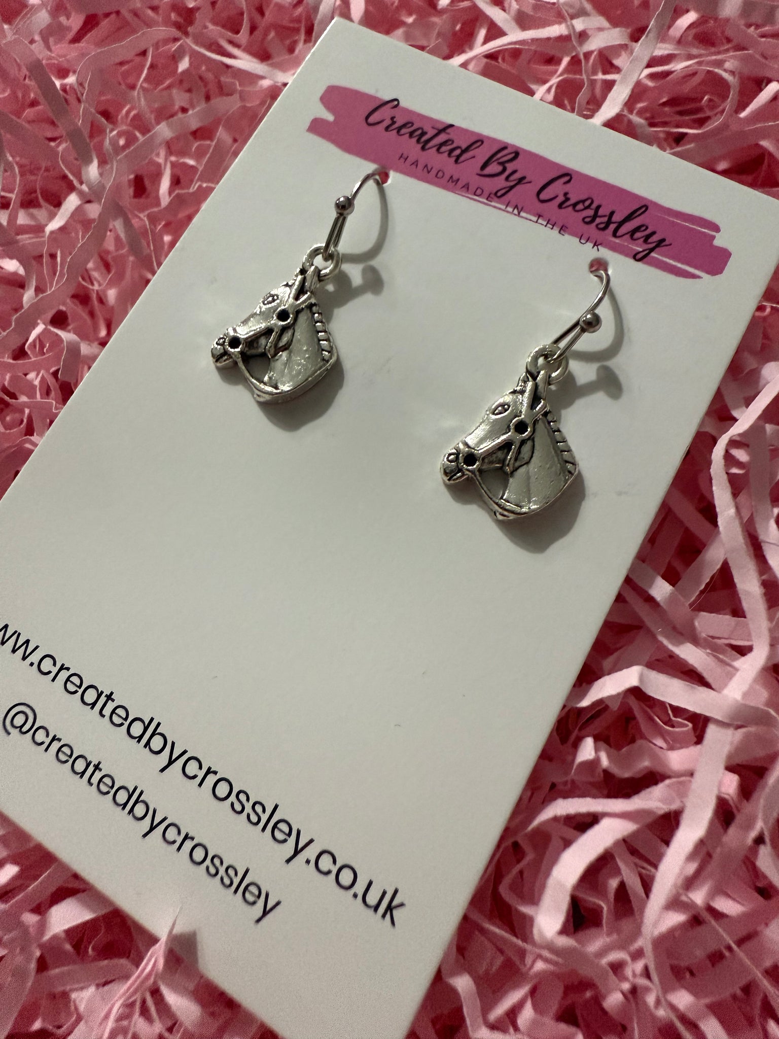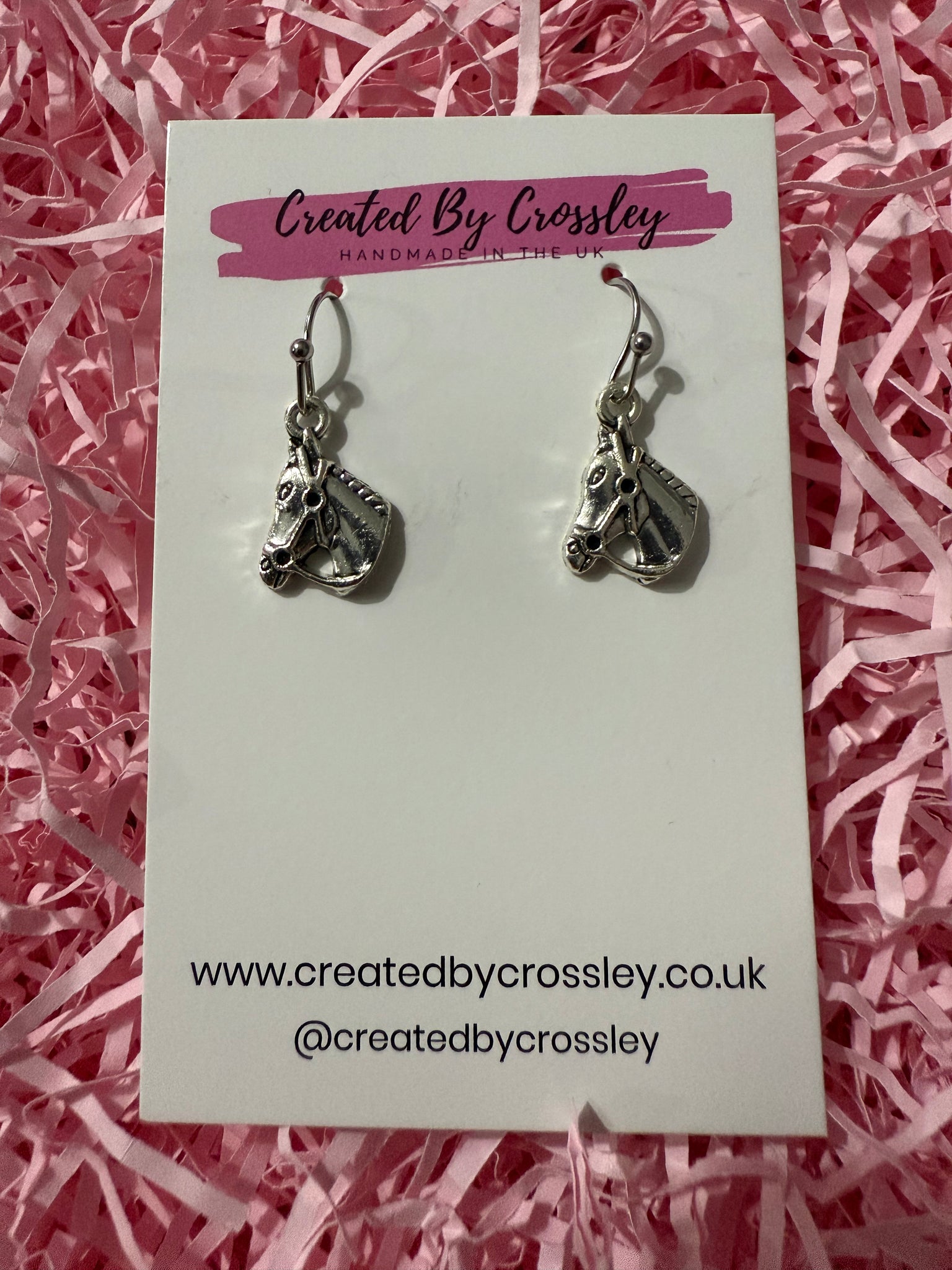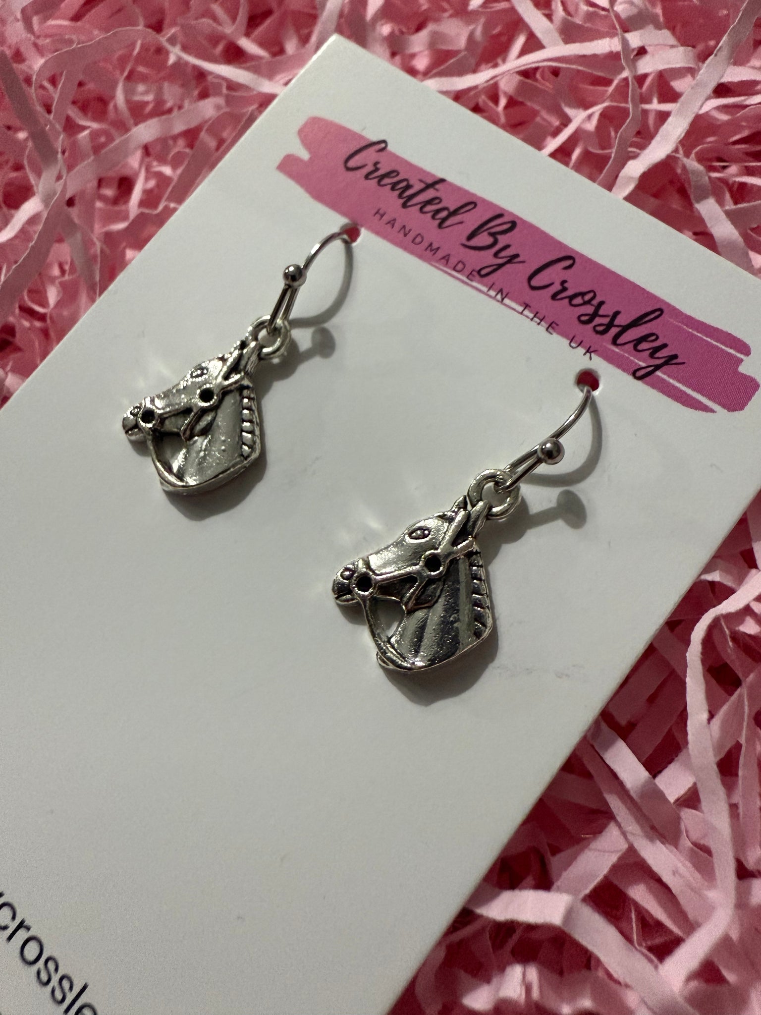 Small horse head charm earrings, perfect for animal lovers! Stainless steel hooks