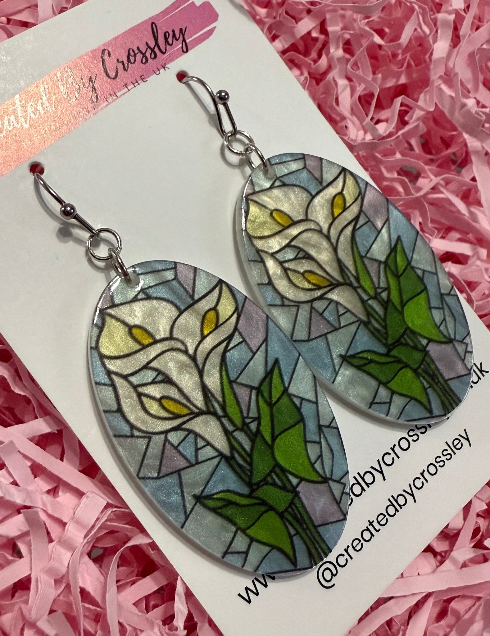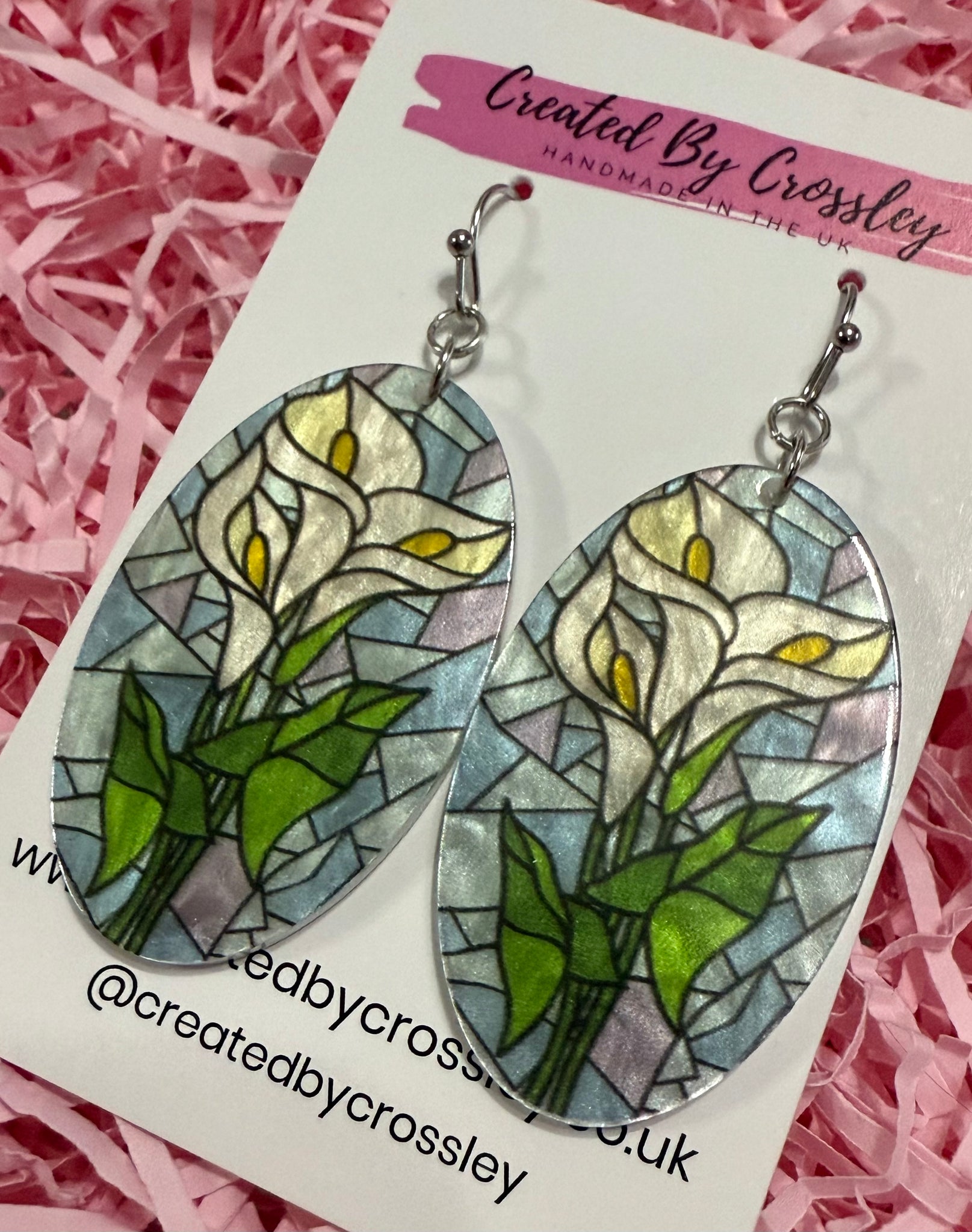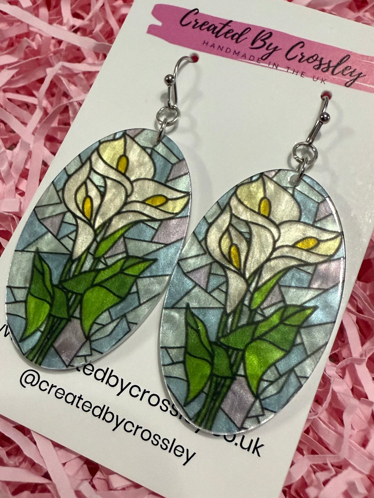 Large statement earrings with stained glass effect flower charms, perfect for gifting or accessorising your own outfits! Stainless steel hooks