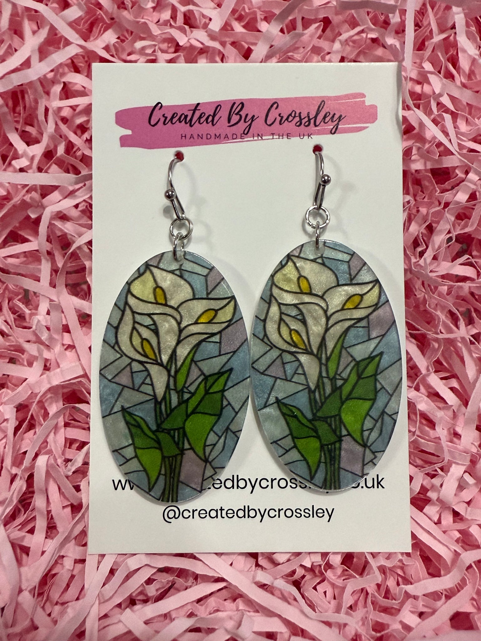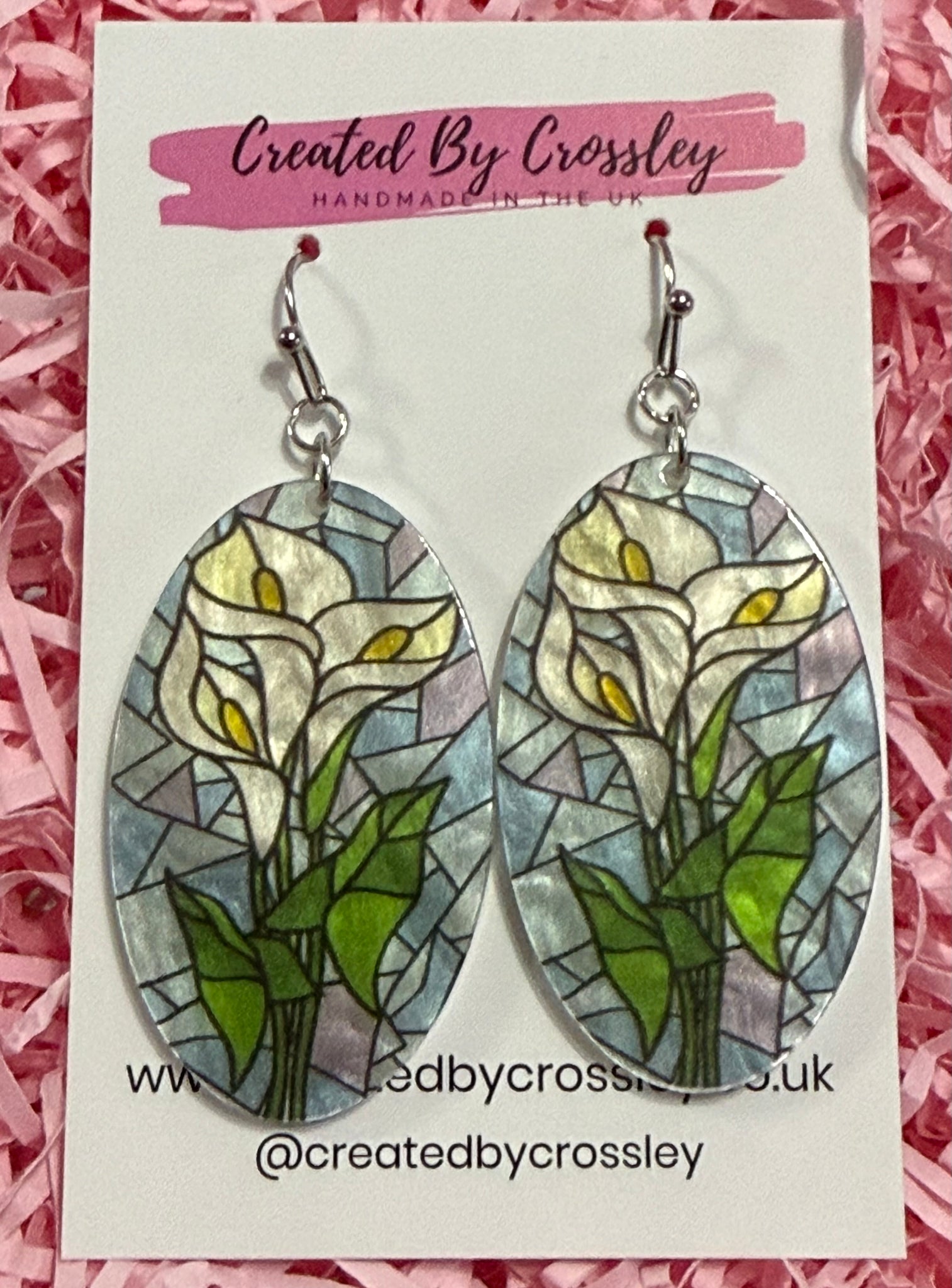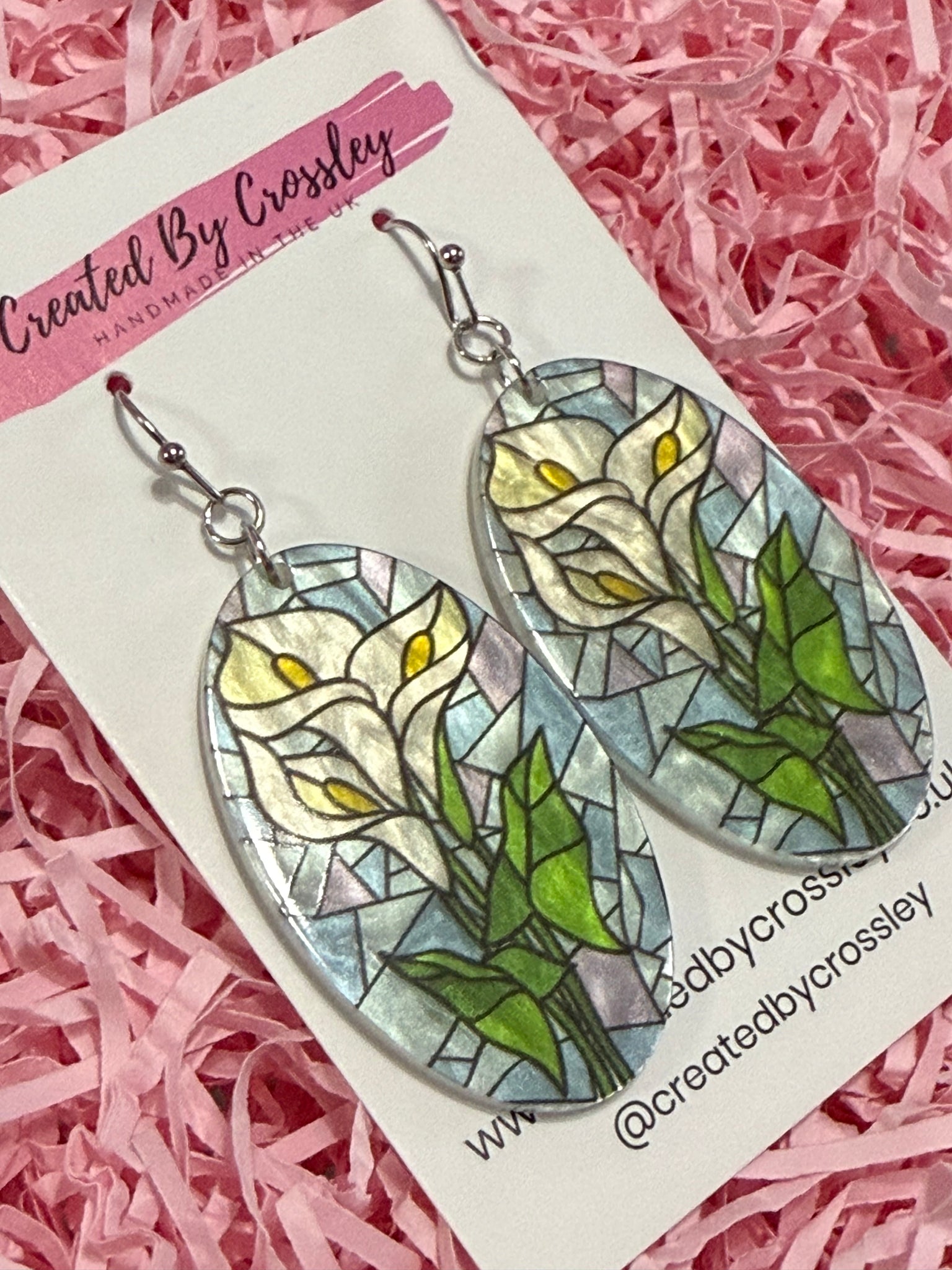 Large statement earrings with stained glass effect flower charms, perfect for gifting or accessorising your own outfits! Stainless steel hooks