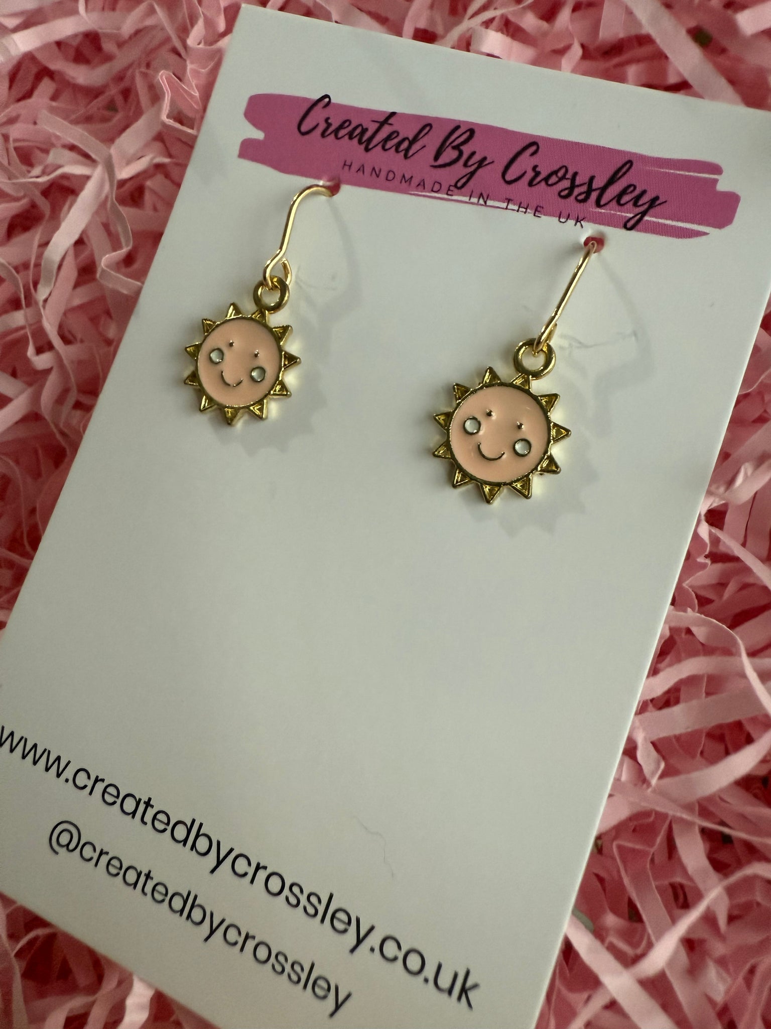 Cute little happy sun earrings perfect for gifting or adding to your own outfits! Stainless steel hooks