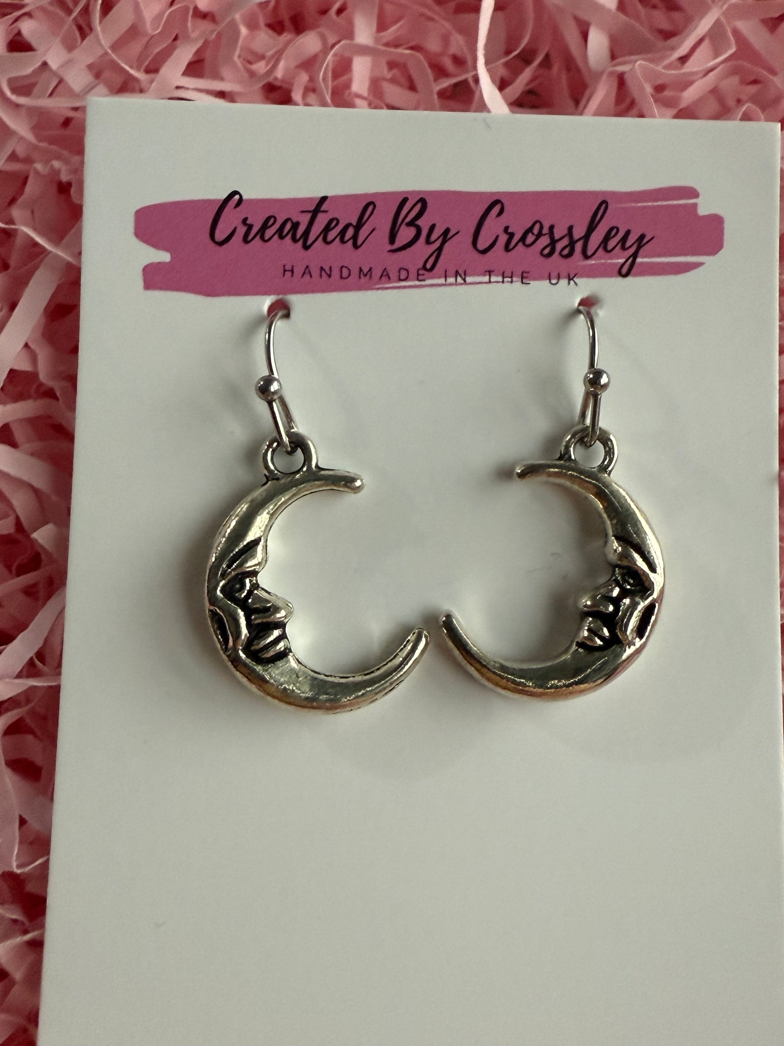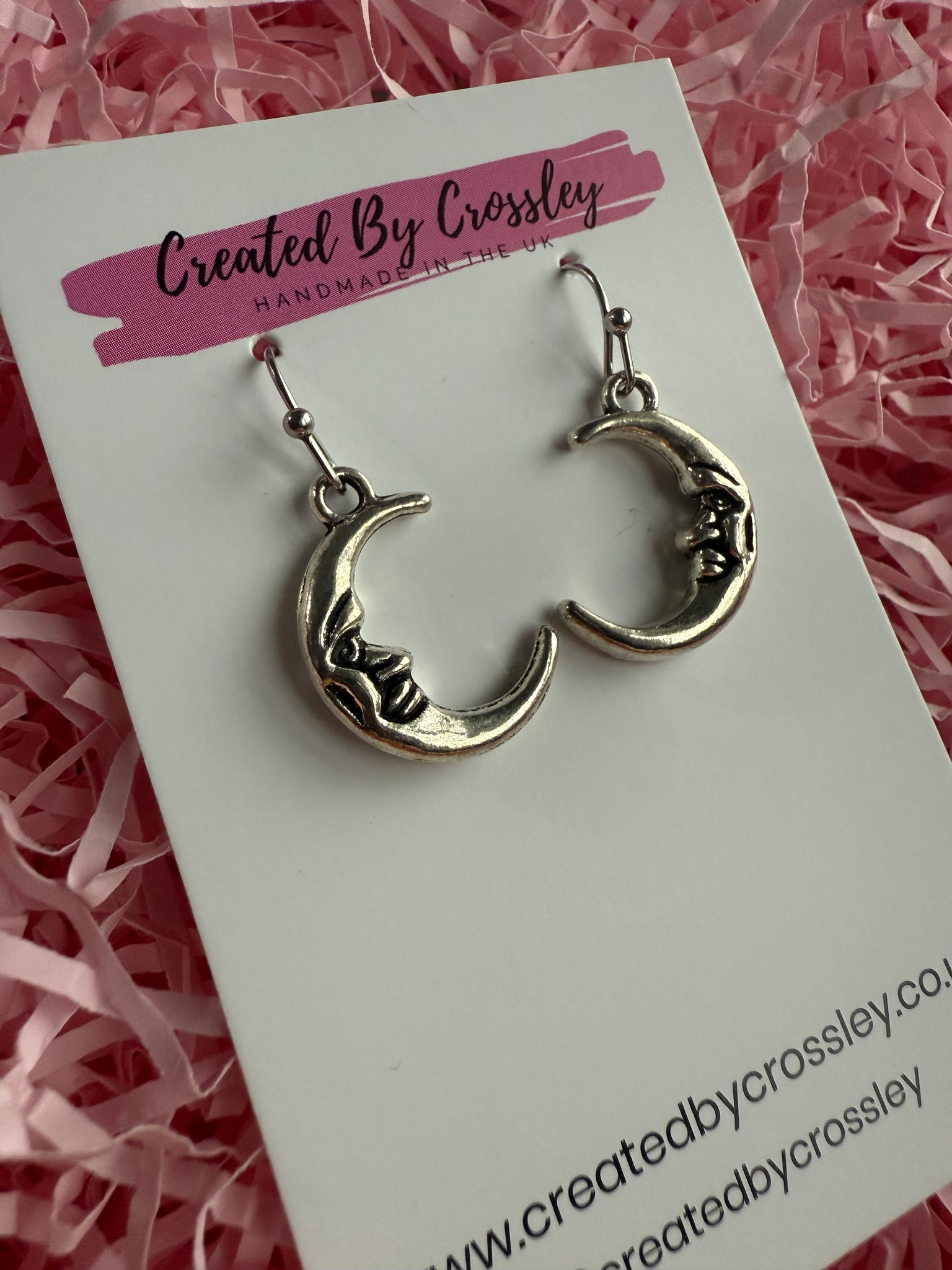 Face moon charm earrings, great for gifting or accessorising your own outfits! Stainless steel hooks