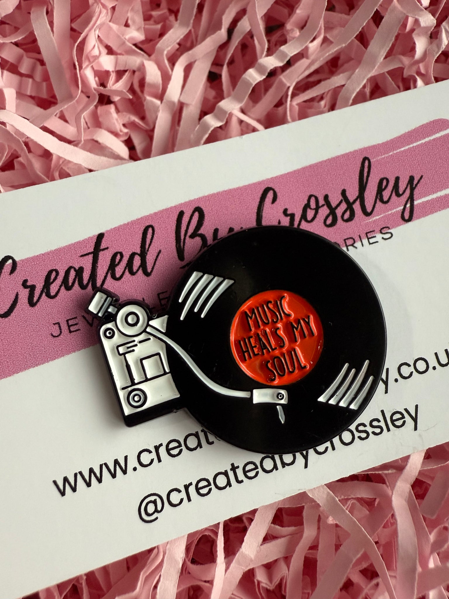 “Music heals my soul” Record Player Pin Badge