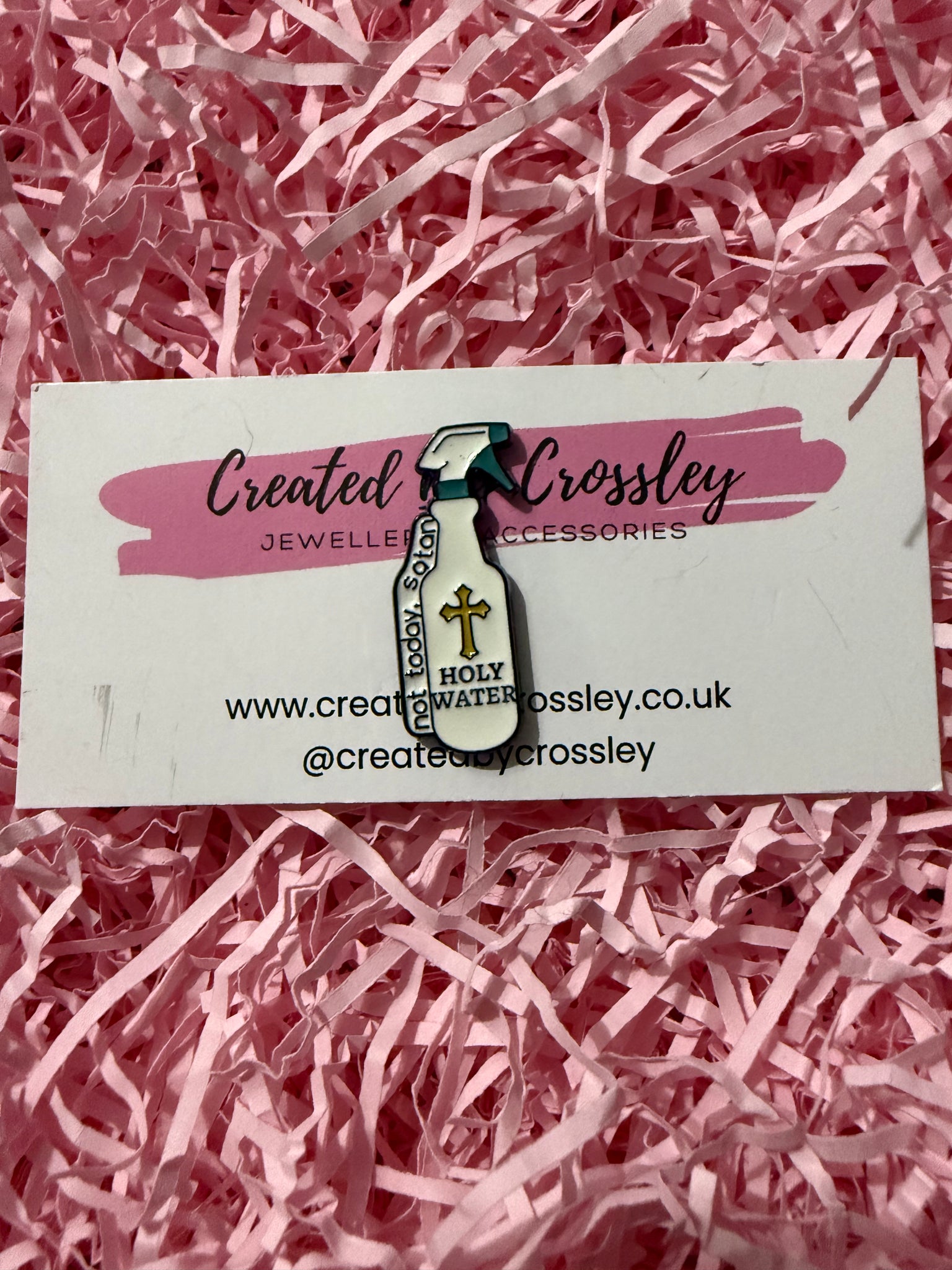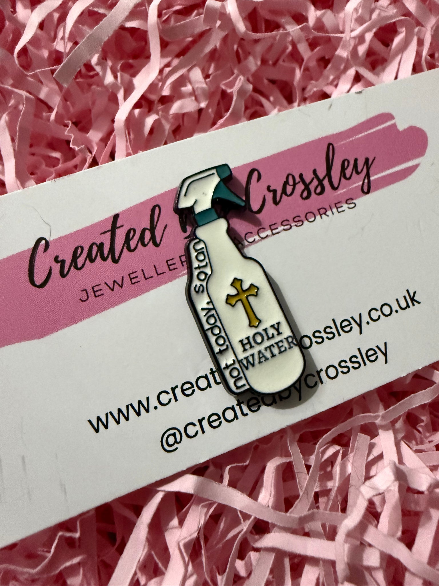 “Not today satan Holy water” Spray Bottle Pin Badge
