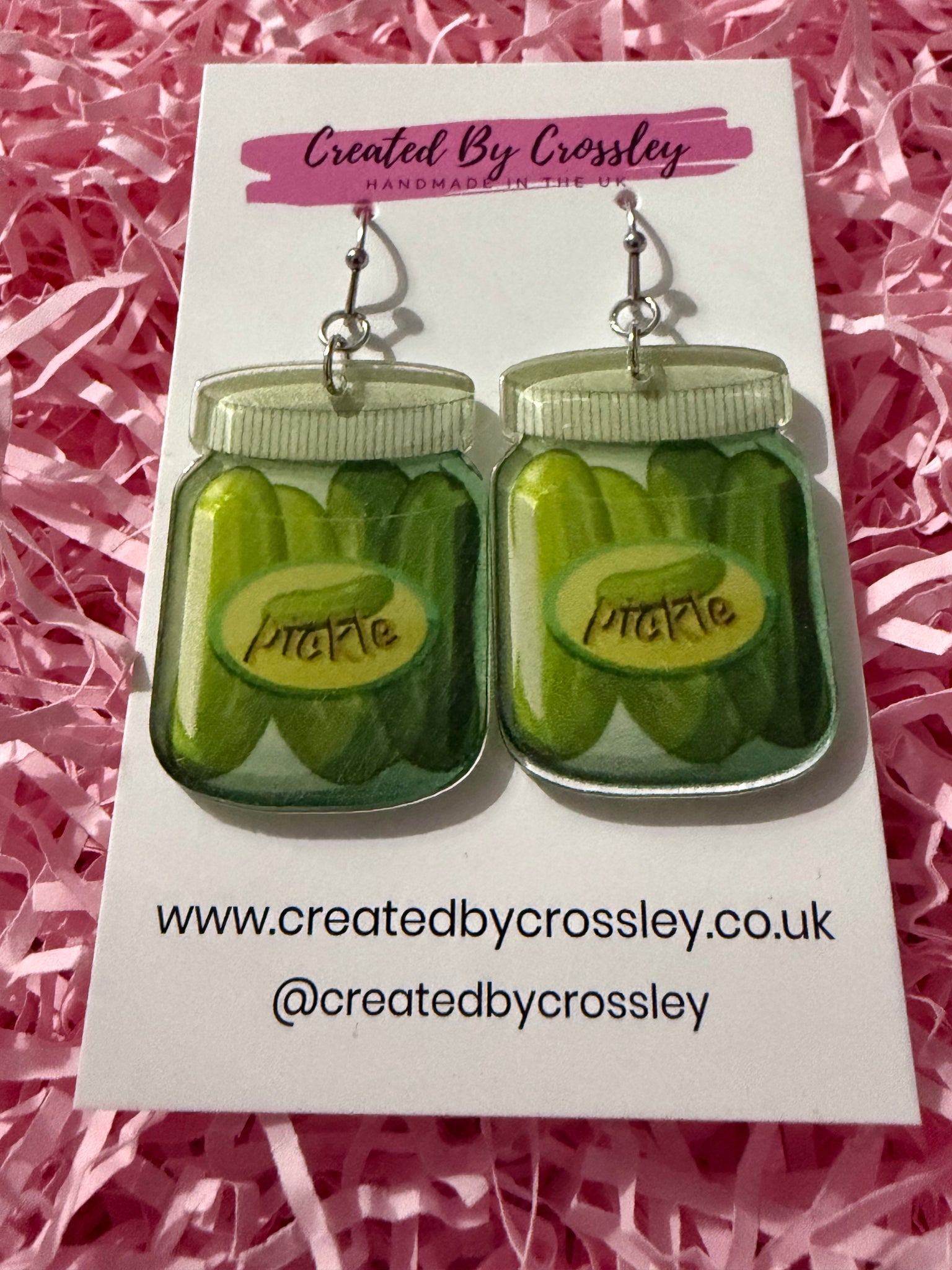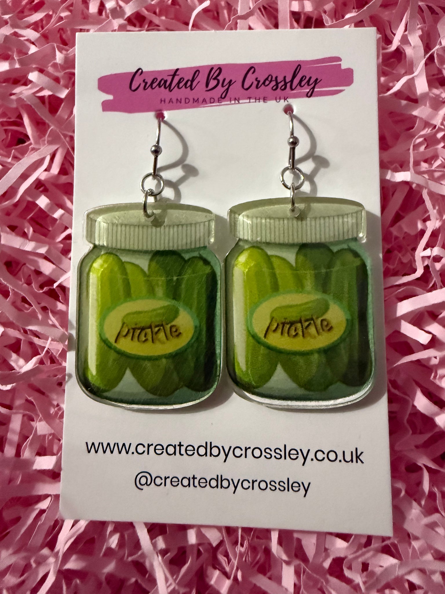 Pickle jar charm earrings perfect for lovers of quirky, fun and unusual statement earrings! Stainless steel hooks