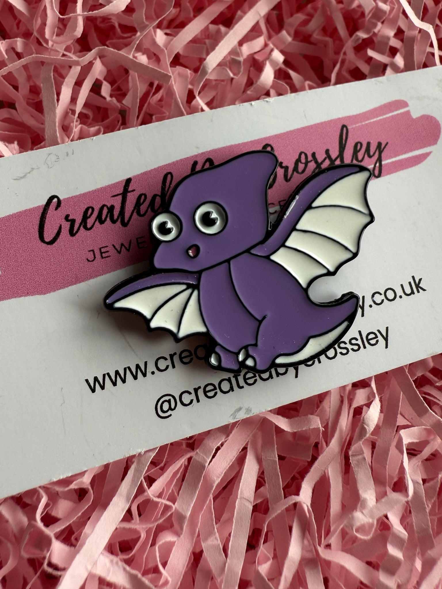 • Load image into Gallery viewer, Purple Dinosaur Pin Badge