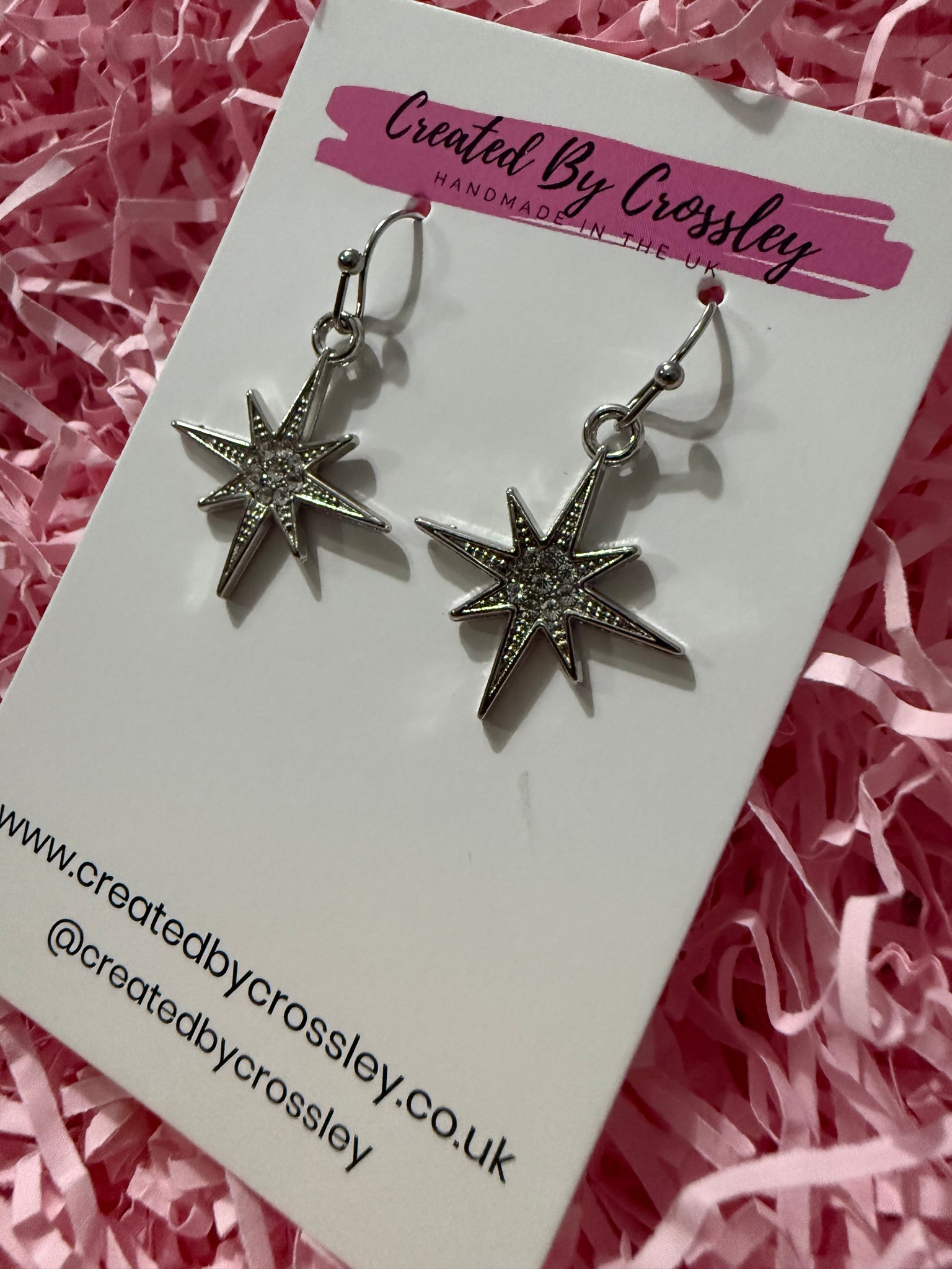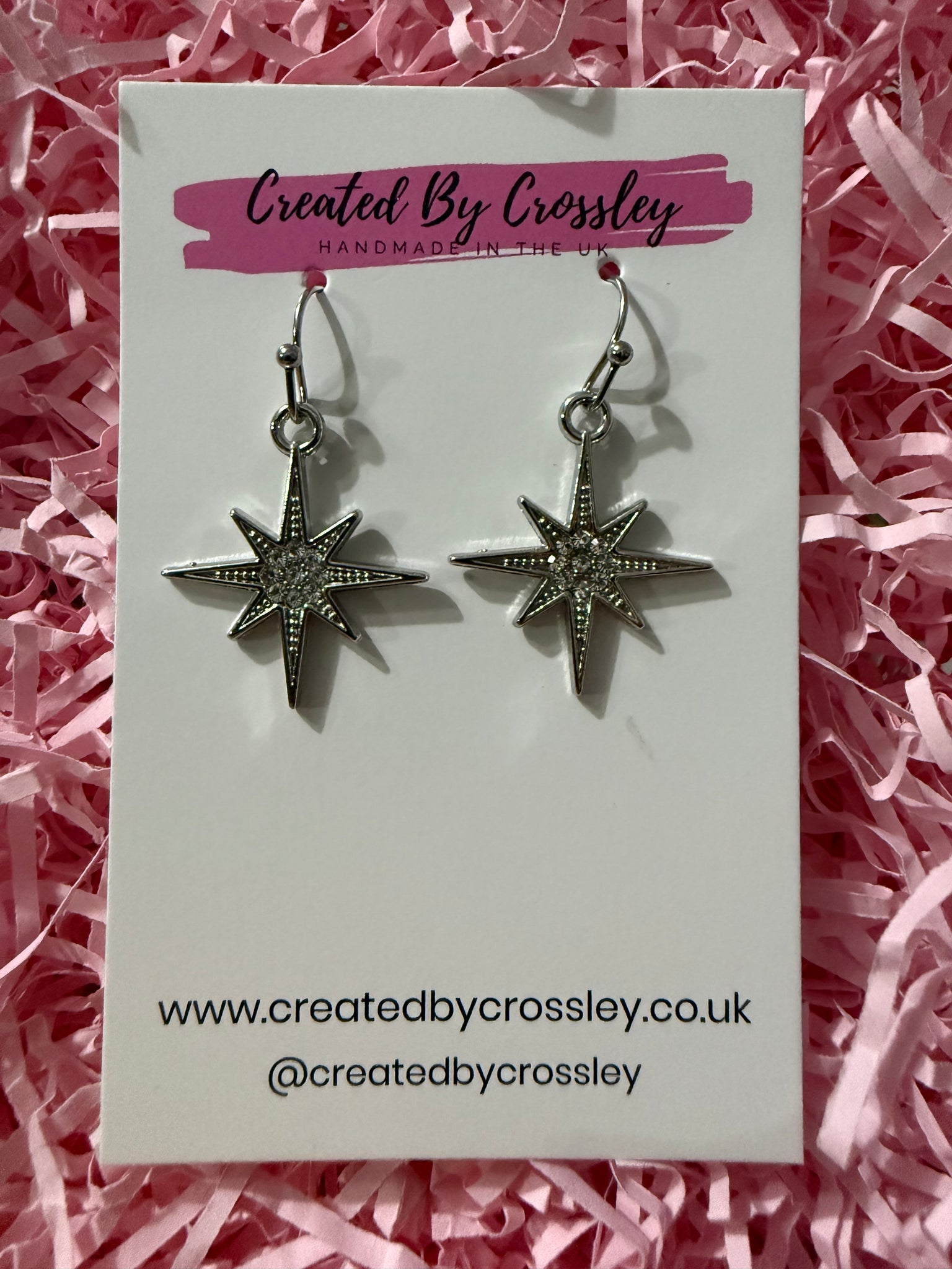 Pretty silver star earrings with sparkly gems, perfect for accessorising any outfit! Stainless steel hooks