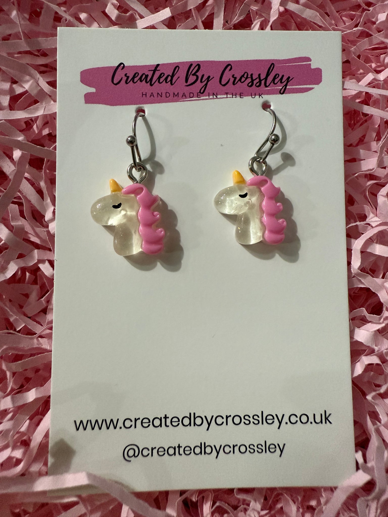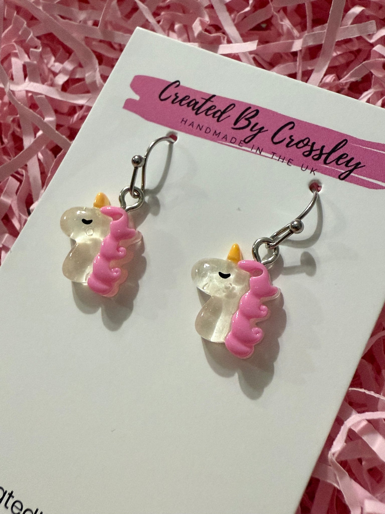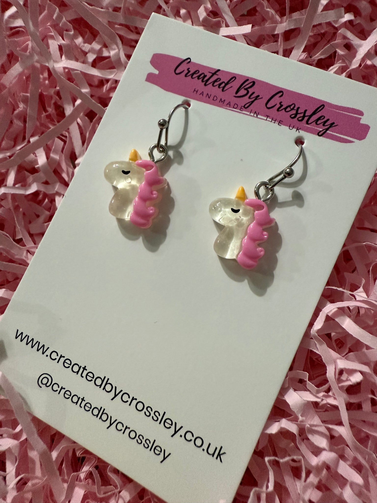 Adorable unicorn earrings perfect for gifting or adding some colour and fun to your outfits! Stainless steel hooks